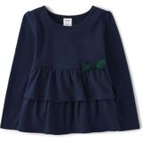 12M-7Y Toddler Baby Girls Ruffle Round Neck Blouse Kids Girl Solid Color Short T-Shirts Casual Tee Tops Bottom