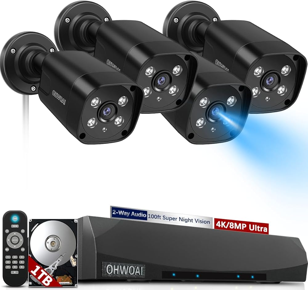 《130° Full-Coverage Pro》With 8.0MP 4K resolution through multi-layer optics, the 130° wide-angle monitors driveways, yards, and entryways in crystal clarity.This wired security camera outdoor system captures facial features and license plates within 100ft, utilizing multi-frame image enhancement to reduce 65% blind zones compared to standard 1080p models for wide-area surveillance