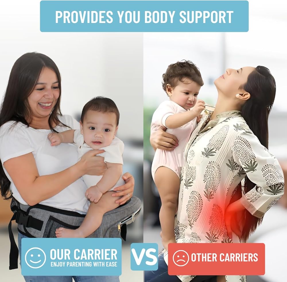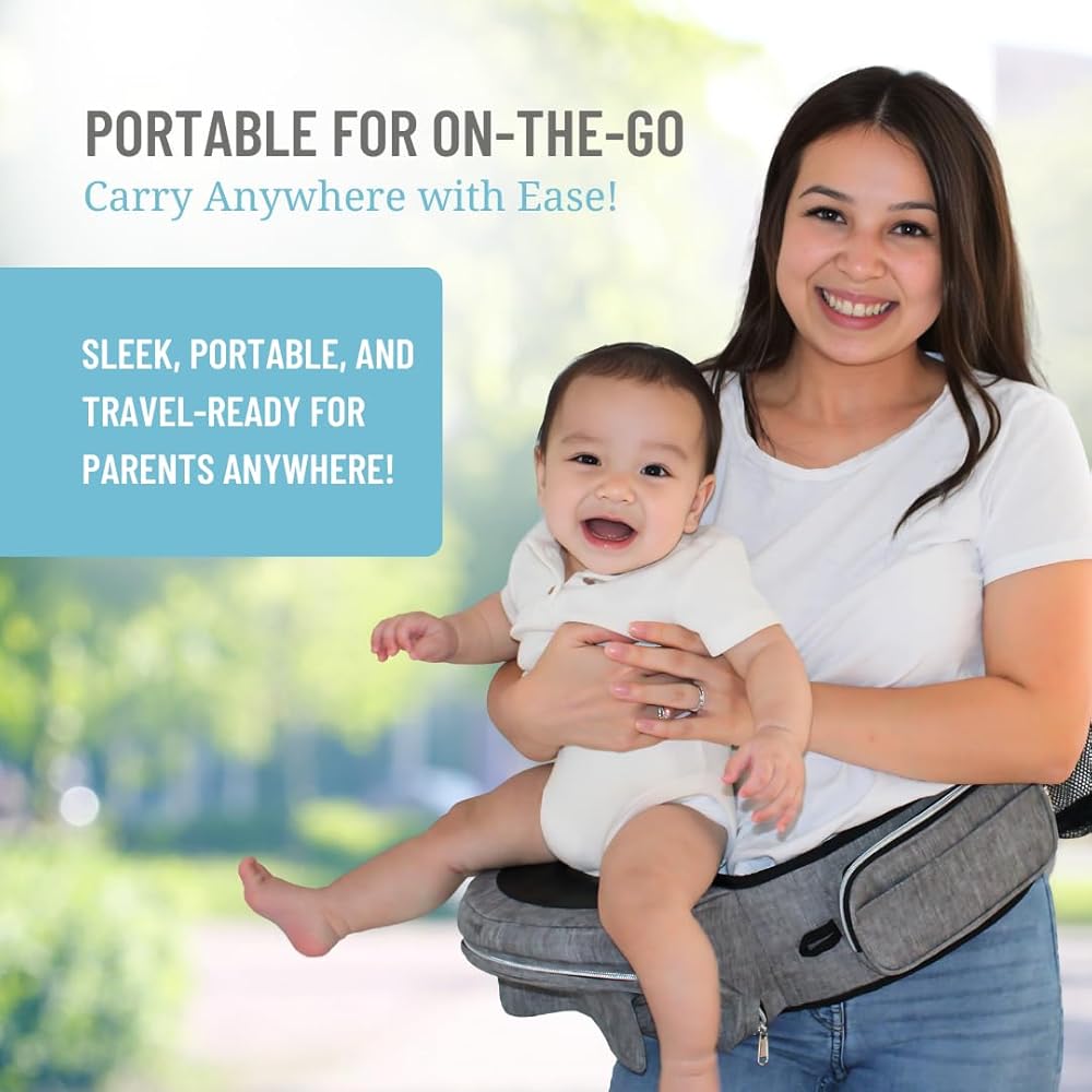 Durable Graphite Construction: This baby hip seat carrier is built with strong graphite material, ensuring long-lasting use. Its stylish design makes it perfect for everyday adventures.