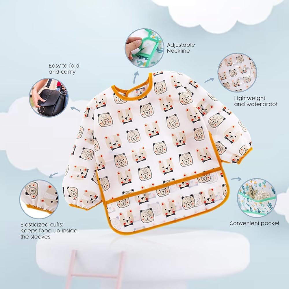 CONVENIENT AND VERSATILE MEALTIME KIT - This comprehensive set includes a bib with a food grabber, spoon, fork, suction cup, bowl, and plate, plus a bonus travel baby bib. Designed to meet all your baby's feeding needs, it's perfect for toddlers and babies just starting on solids, making mealtime easier and more fun.