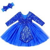 FASHION TUTU DRESS: Toddler girls party dresses, with royal blue sequin bow on back, royal blue tulle on bottom of the aline dress and free match sequin headbands, available for 6 months-8 years old baby girls. Zipper on side of kids dress with two layer tulle and a cotton line bottom