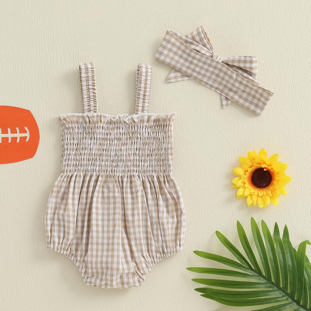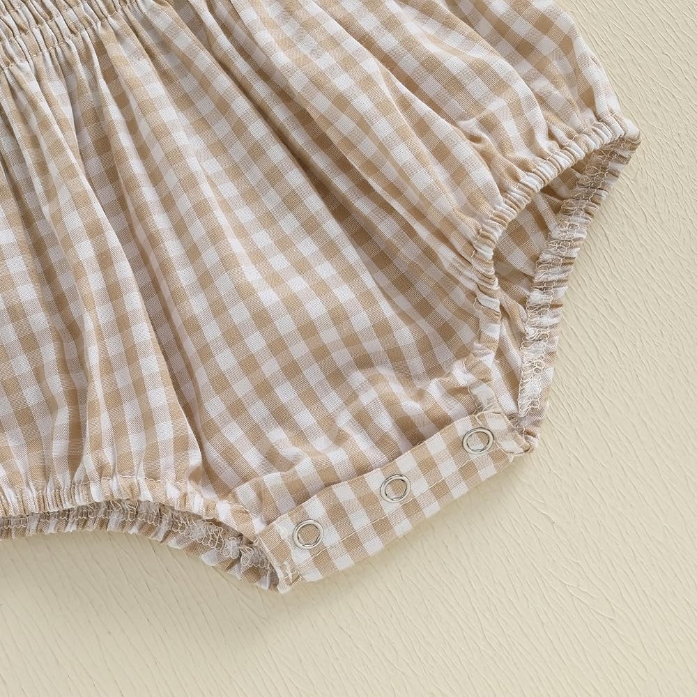 Features: Cute bubble romper for baby girls features square neck, sleeveless, shirred bust, frill trim neckline, and bottom snap design for easy to put on and take off; Paired with contrasting plaid and letter/flower embroidered patterns, super cute