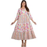 It's just the right time to welcome ethnic attire in your wardrobe. These easy breezy A-Line Reyon Suit Set showcasing prints, intricate embroidery-work detailing which is sure to steal the limelight on any occasion. It is paired with matching pants and dupatta.
