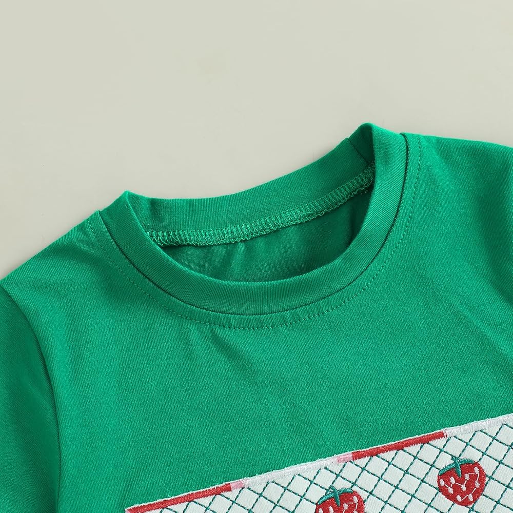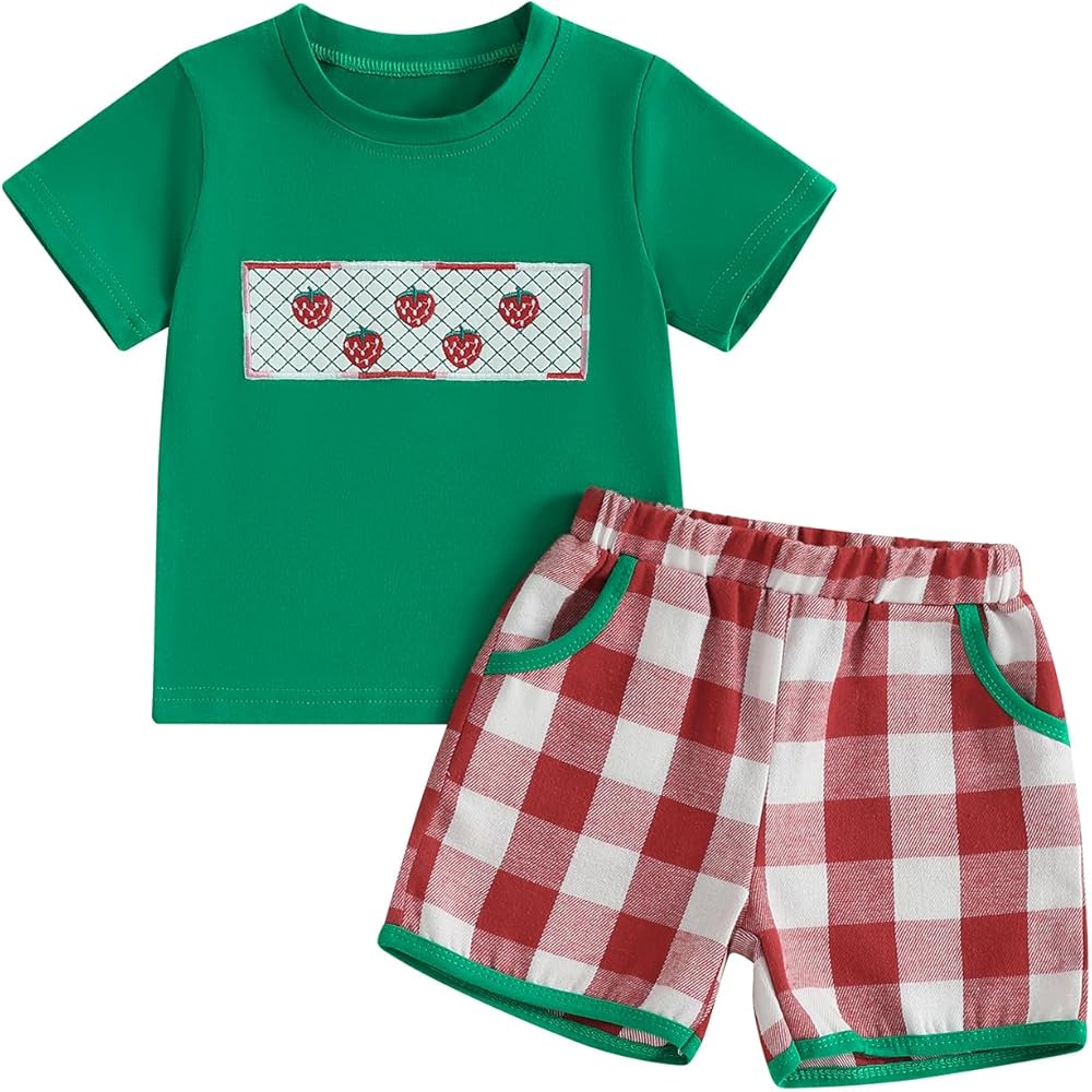 Toddler Baby Boy Summer Clothes Short Sleeve Embroidered T Shirt Tees + Striped/Plaid Shorts Infant 2 Piece Outfits Set