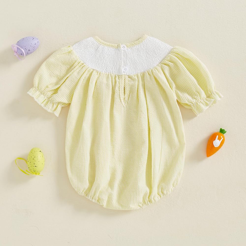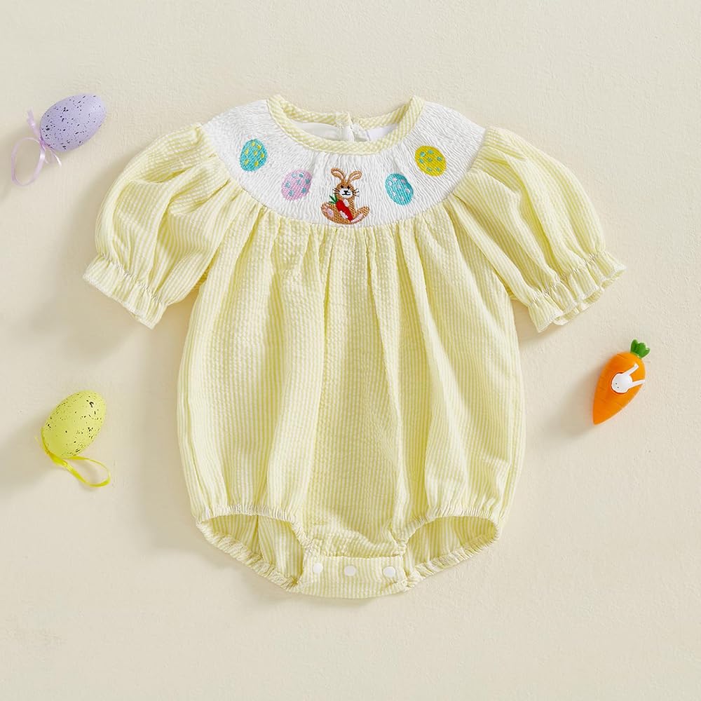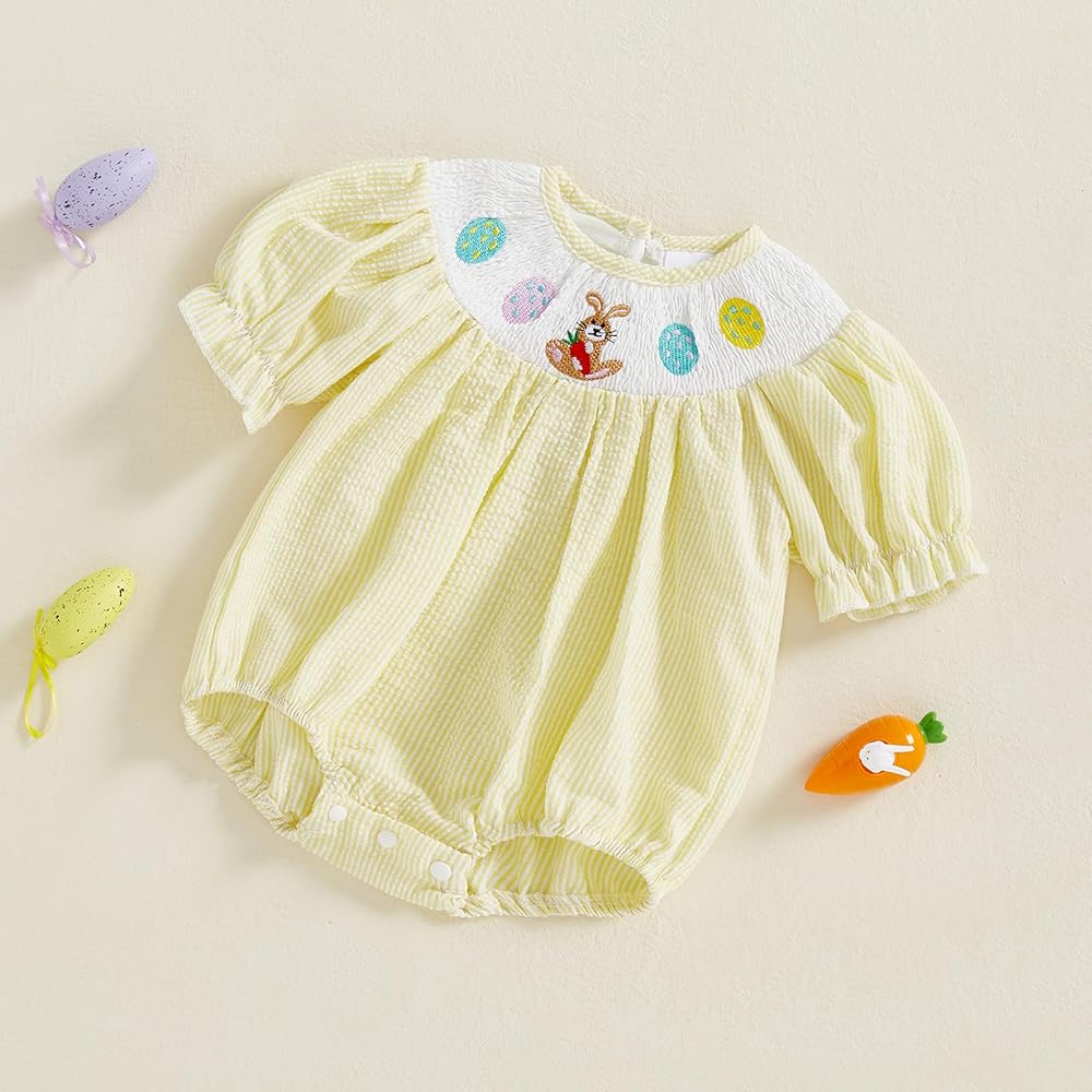 - Package: 1* Baby Girl Easter Romper. summer baby girl clothes, baby girl summer outfits, baby girl short sleeve romper, rabbit clothes, baby bunny outfit, baby easter outfit girl, baby girl smocked romper, baby bubble romper girl, baby first easter outfit, bubble romper baby girl, newborn girl outfits, infant girl clothes