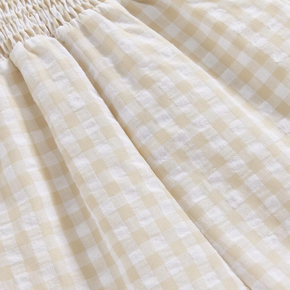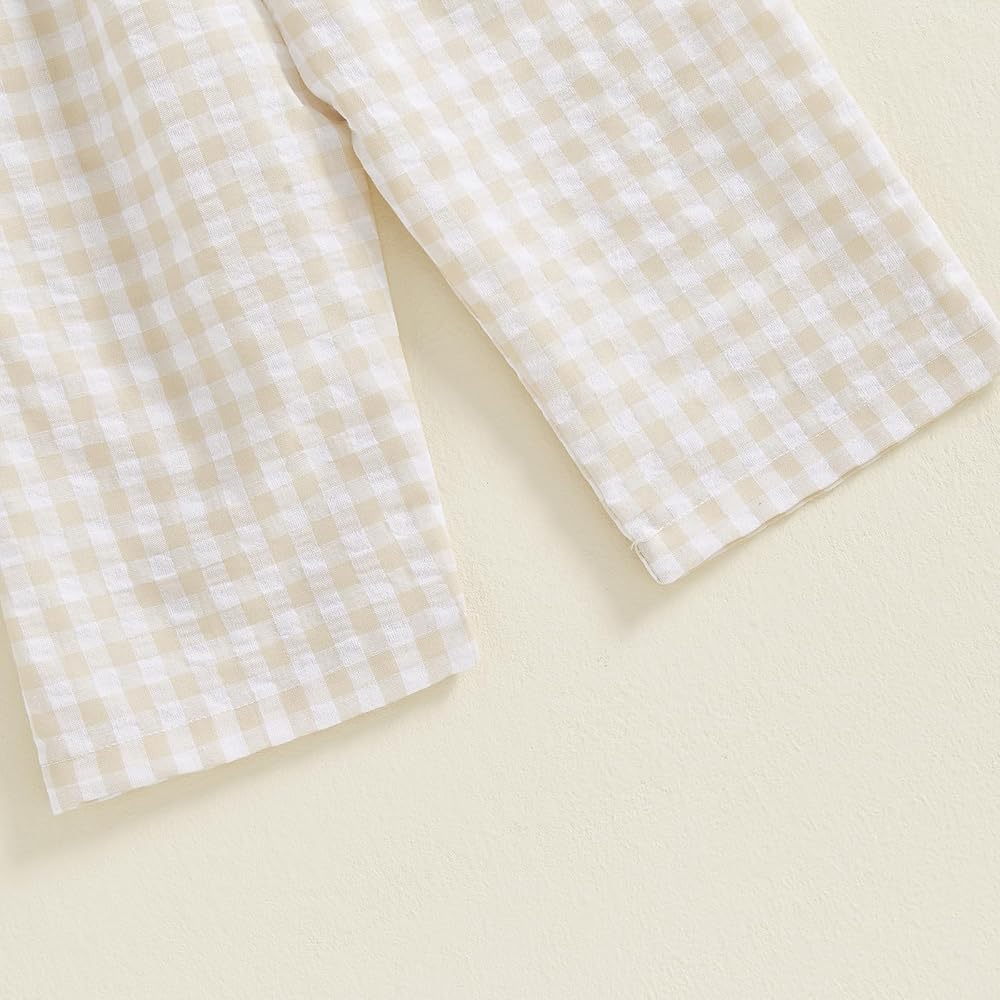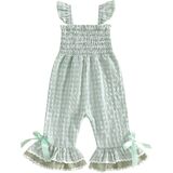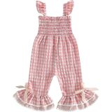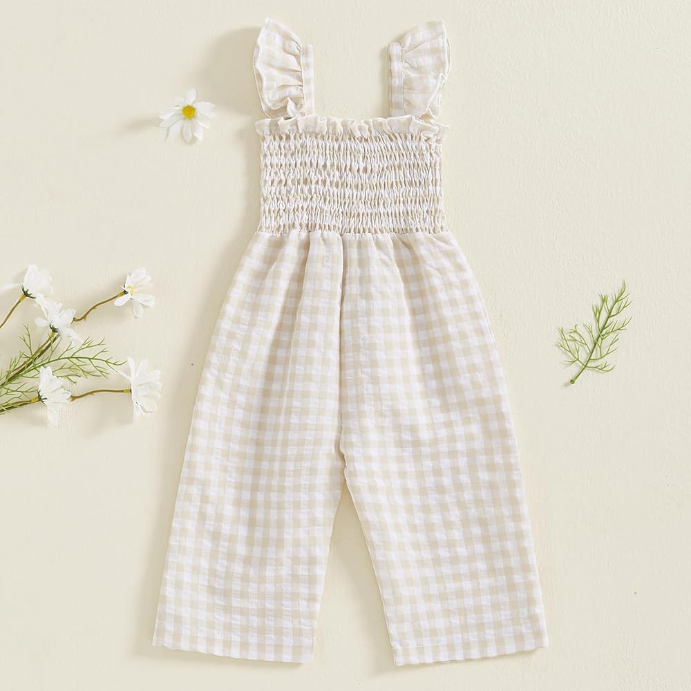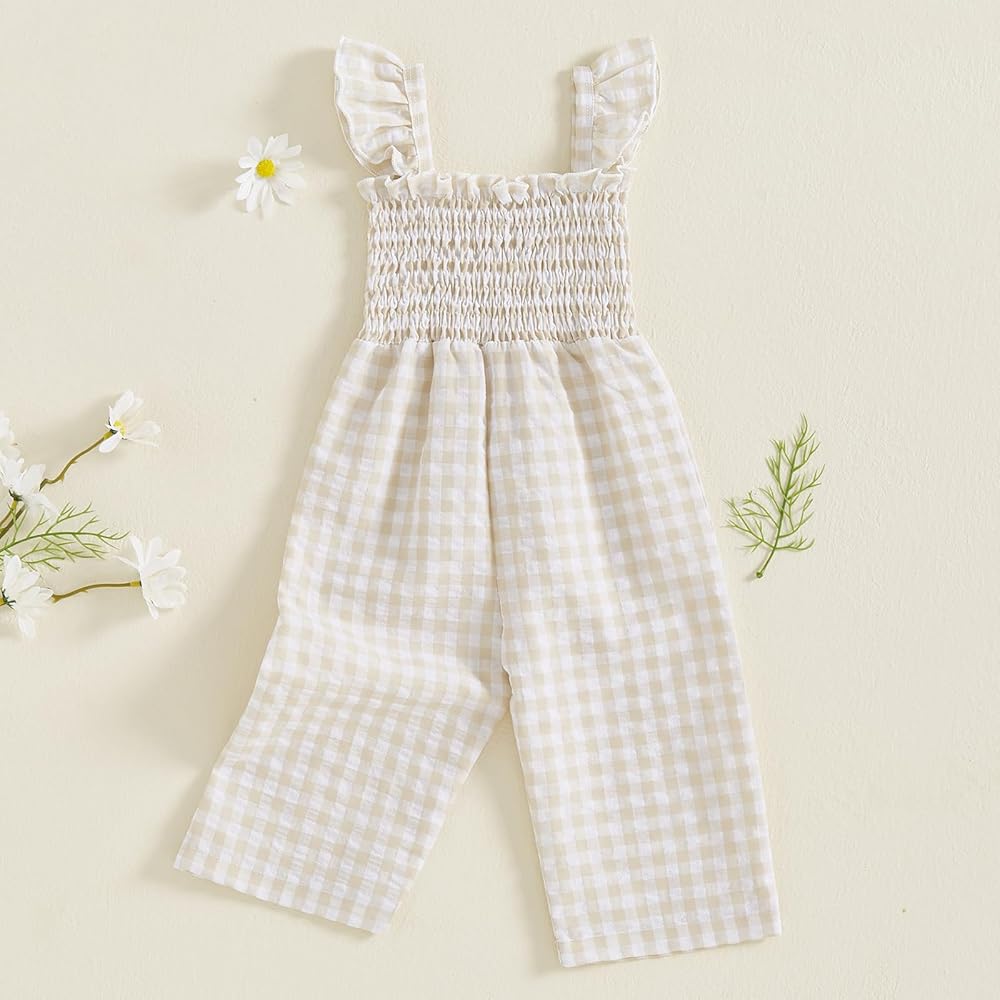 Baby Girl Rompers Ruffle Sleeveless Plaid Print Smocked Jumpsuit Suspender Pants Summer Outfit