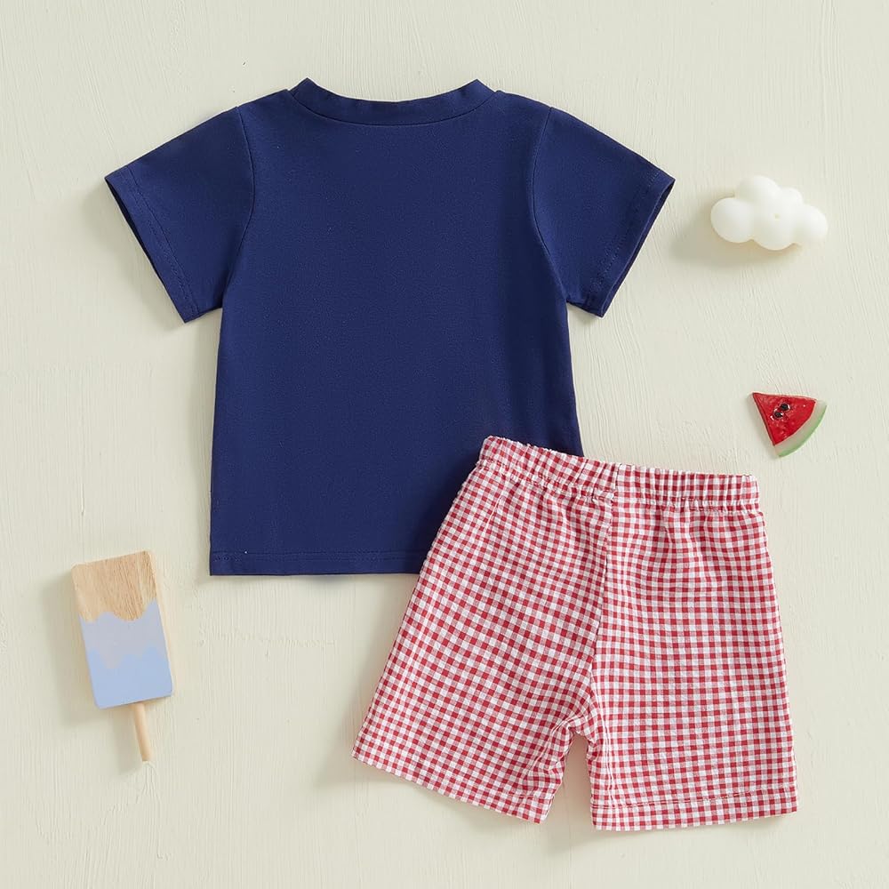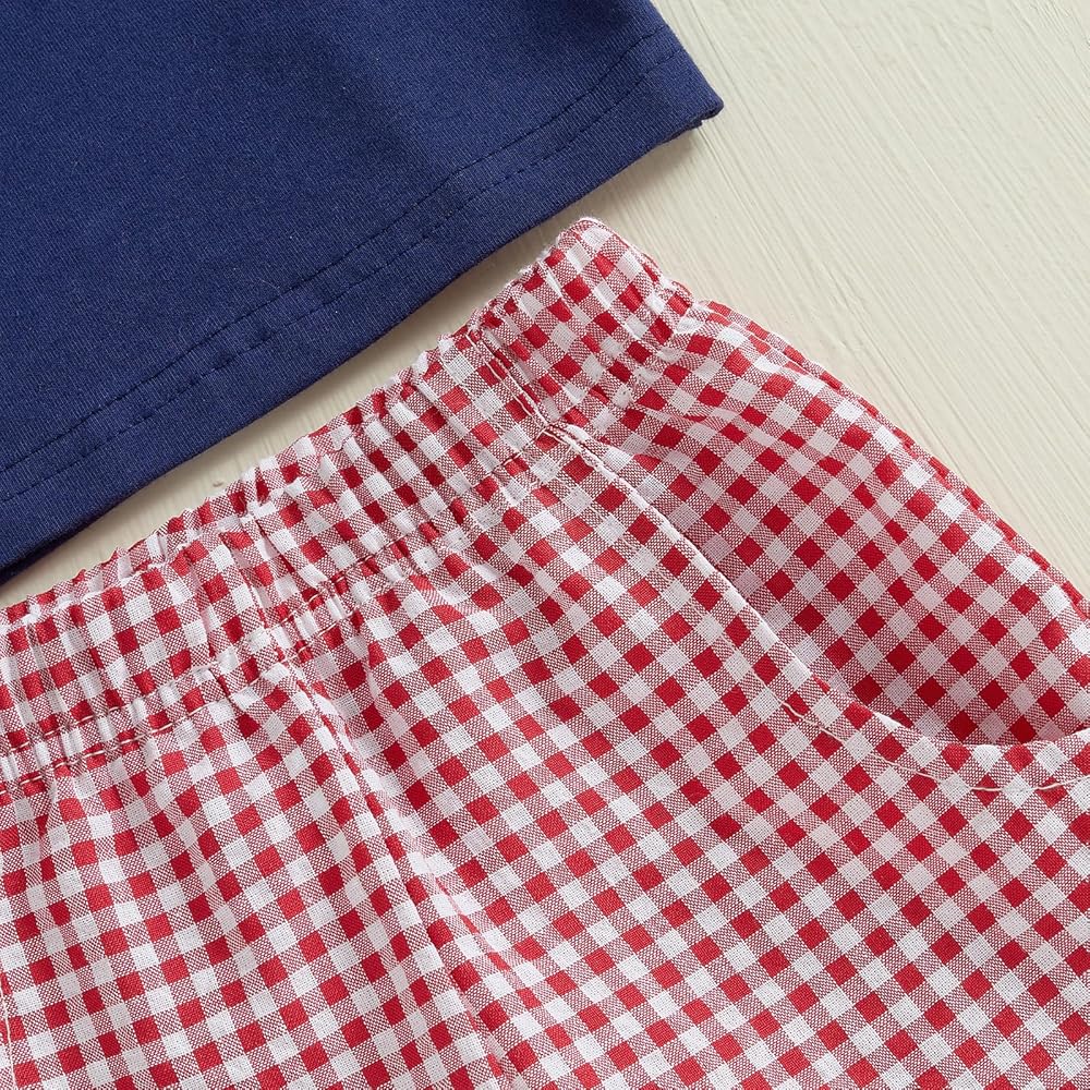Age:Baby boy shorts set, trendy infant boy's clothes set, fire truck embroidery tops plaid shorts set, suitable for 6-12 month,12-18 month,18-24 month,2-3t, 3-4t, toddler boy clothes, makes your little baby looks lively and cute