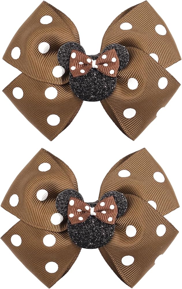 4 Inch Cute Mouse Ears Sequins Bows Hair Clips For Baby Girls, Toddler, Kids and Young Women Birthday Party Wedding Christmas Occasions Set of 2 (A- Coffee)