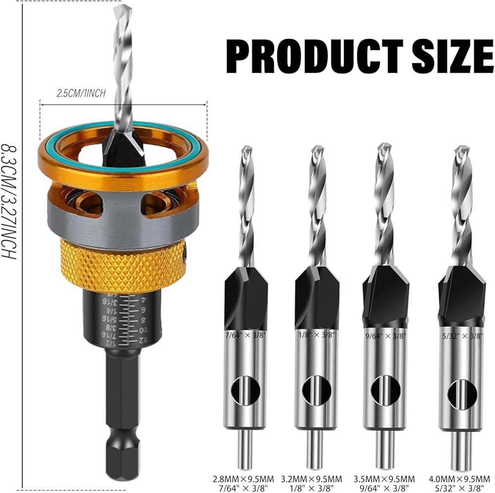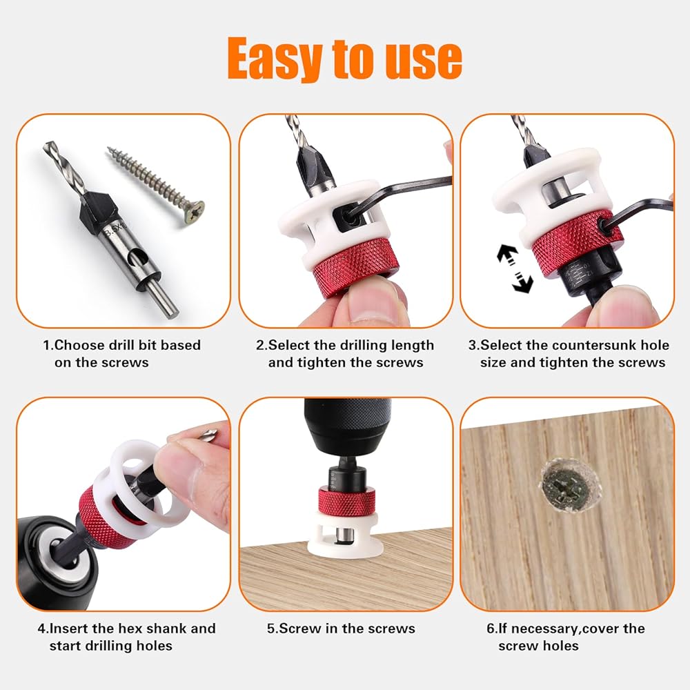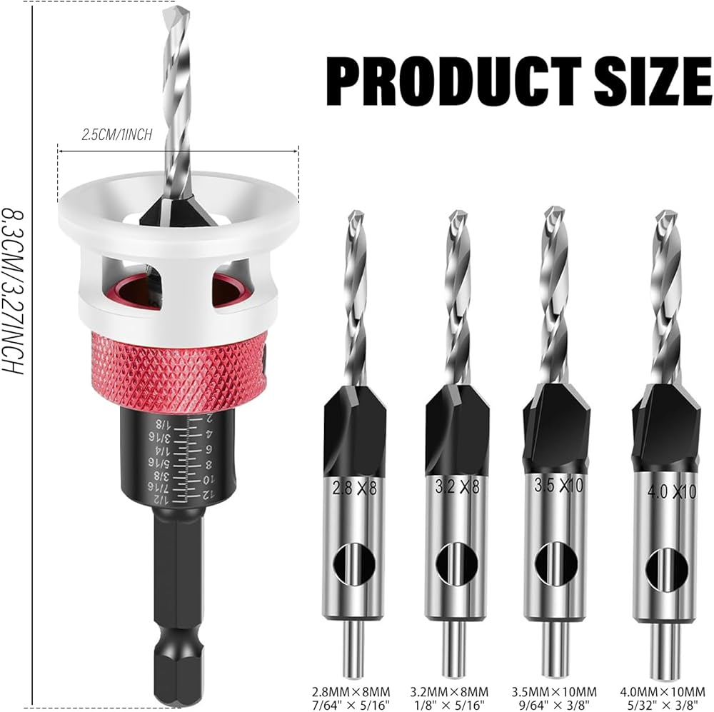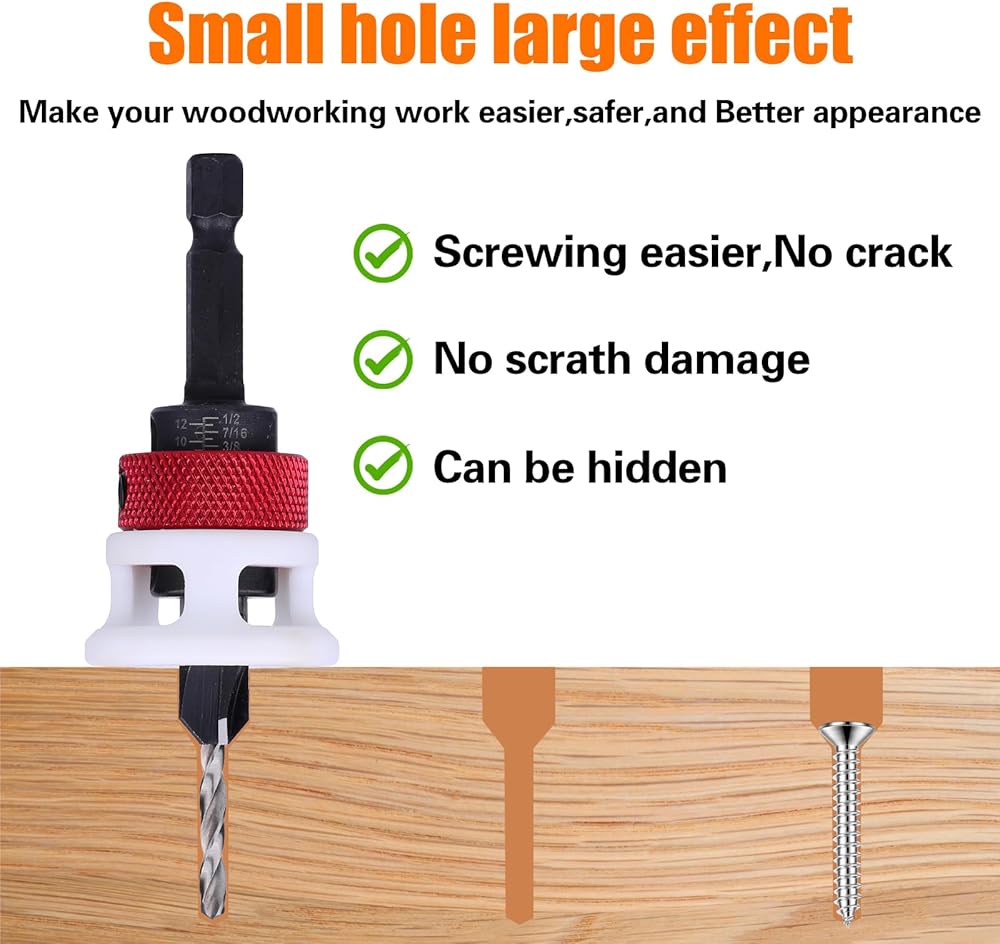 【Adjustable Depth】Both drilling and countersinking depths can be easily adjusted using hex screws and depth control stops, providing enhanced flexibility for various tasks and applications.