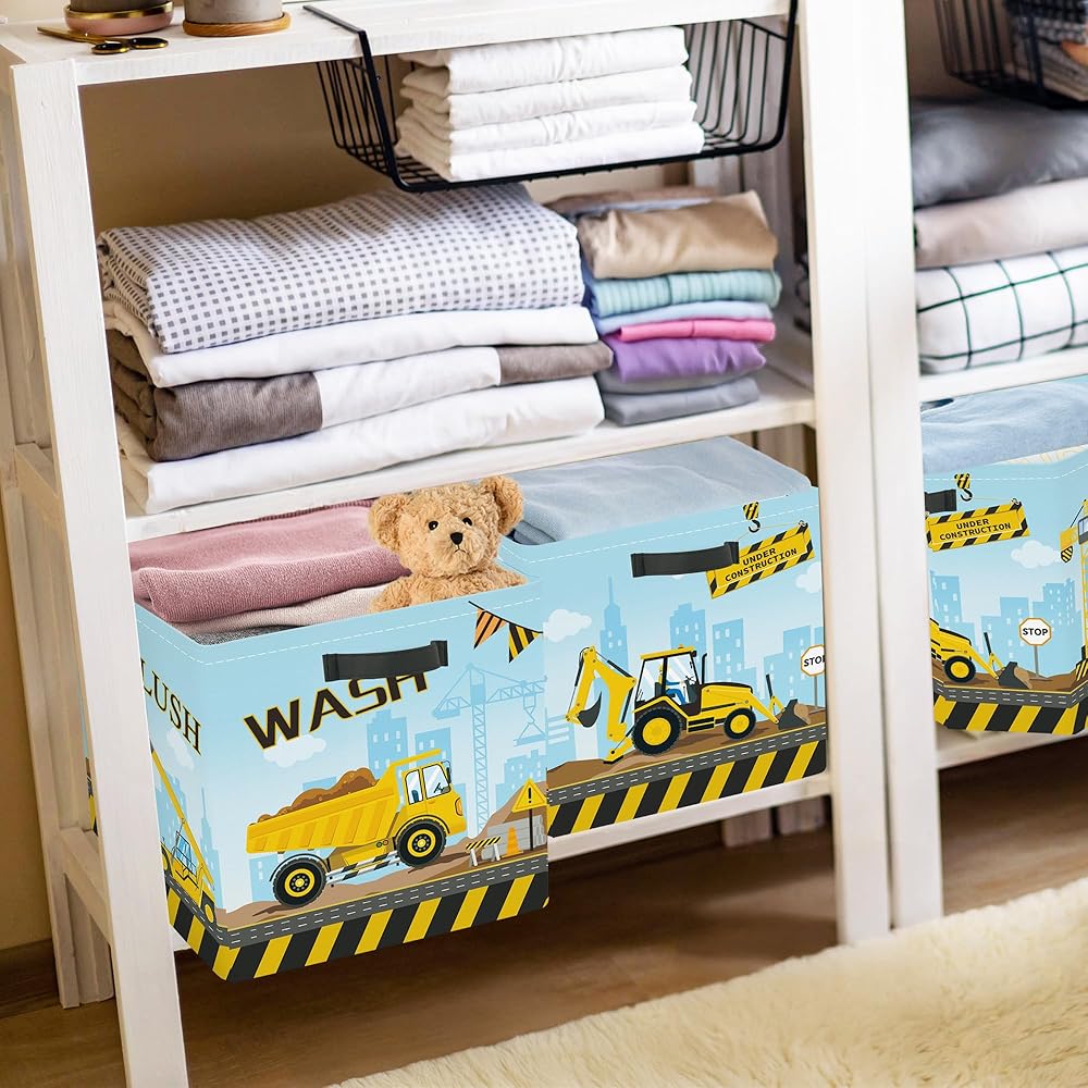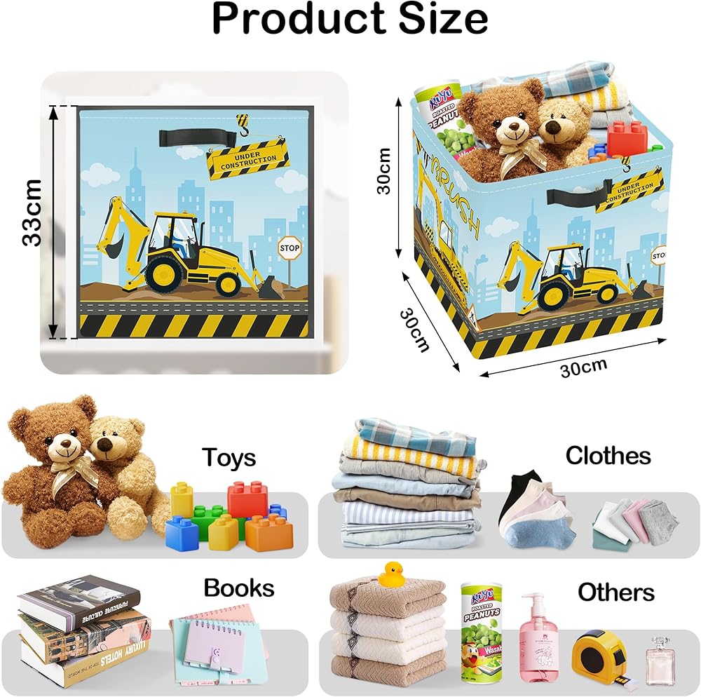 Excavator Truck Toy Cube Set of 3: Not only for toys, cube bin can also hold book, clothes, puzzles, crafts, shower supplies and other household items, these cloth storage bins could meet all your family storage needs