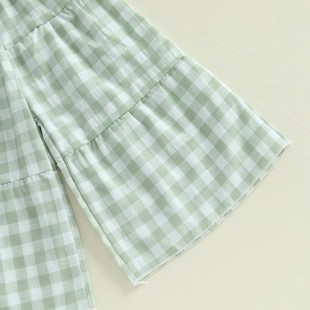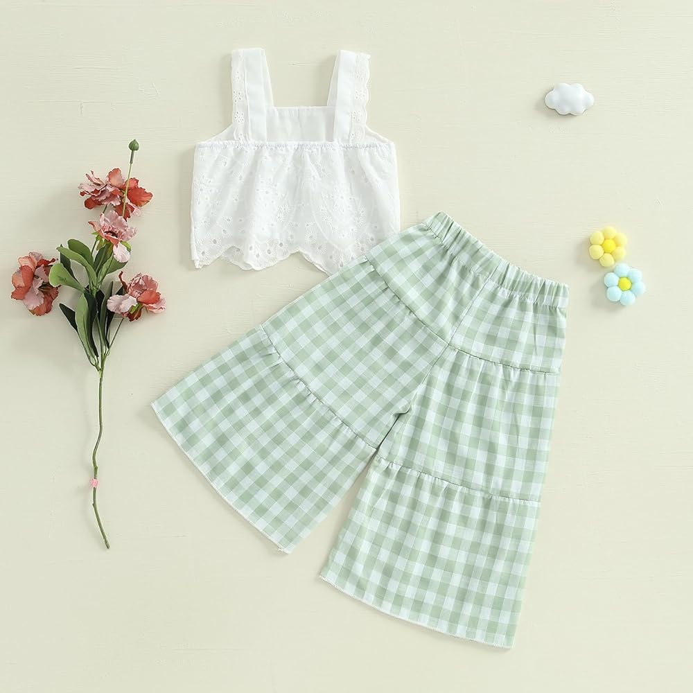 Little Kids Toddler Girl Summer Clothes Lace Hollow Out Sleeveless Cropped Tank Cami Tops + Elastic Waist Plaid Print Wide Leg Pants 2 Pcs Set Baby Girls Outfit