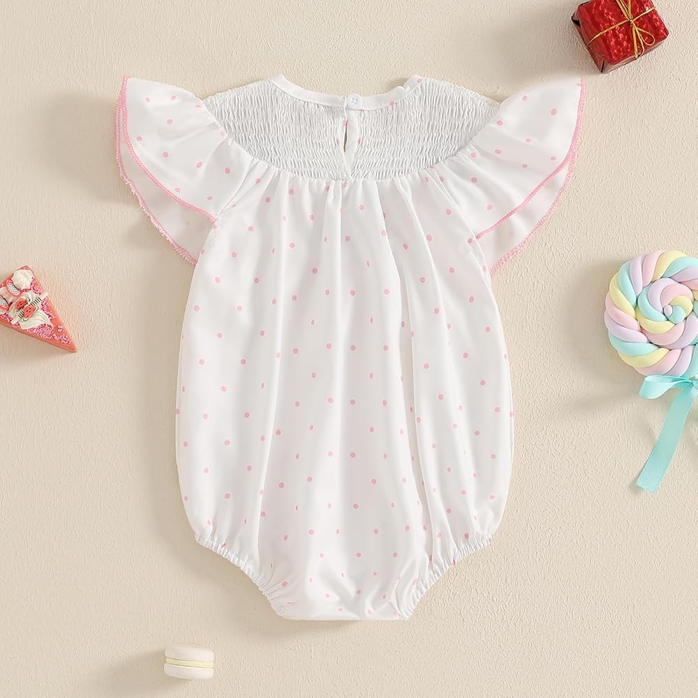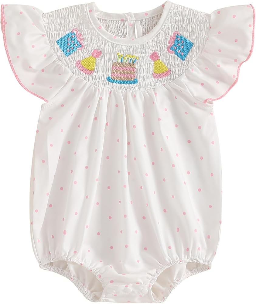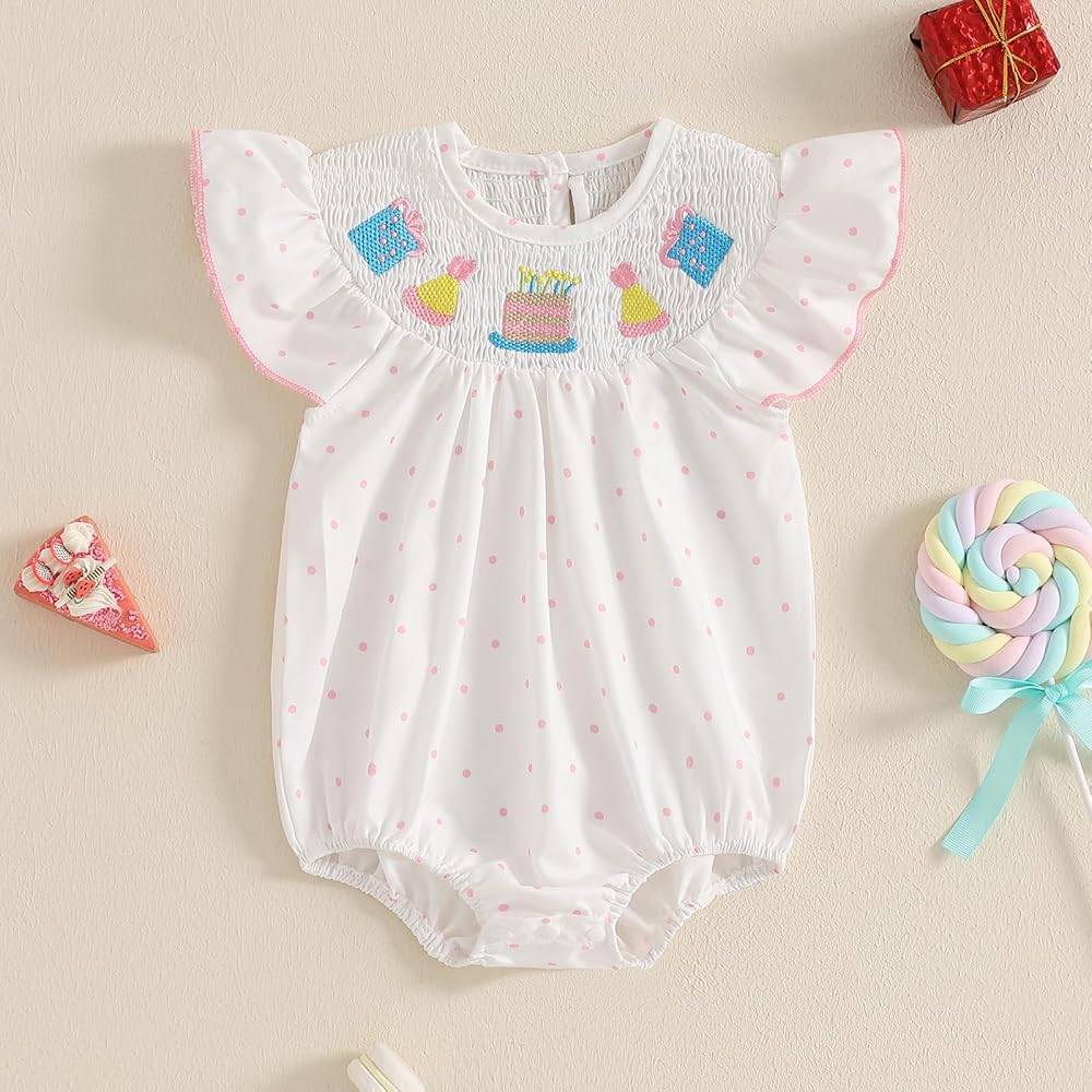 Baby Girls Rompers Birthday Clothes Birthday Cake Embroidery Fly Sleeve Infant Bodysuits Jumpsuits