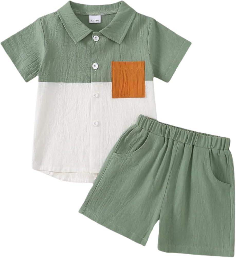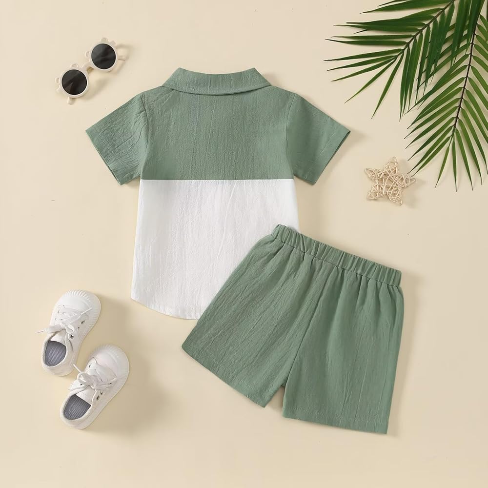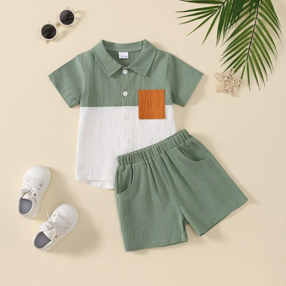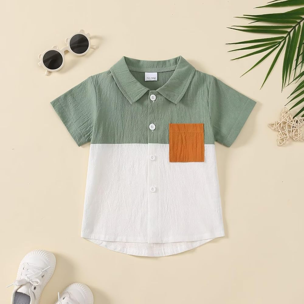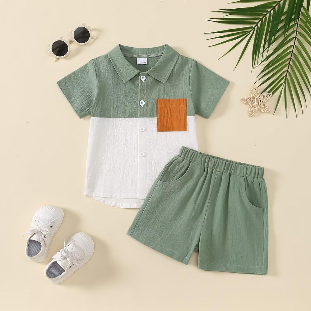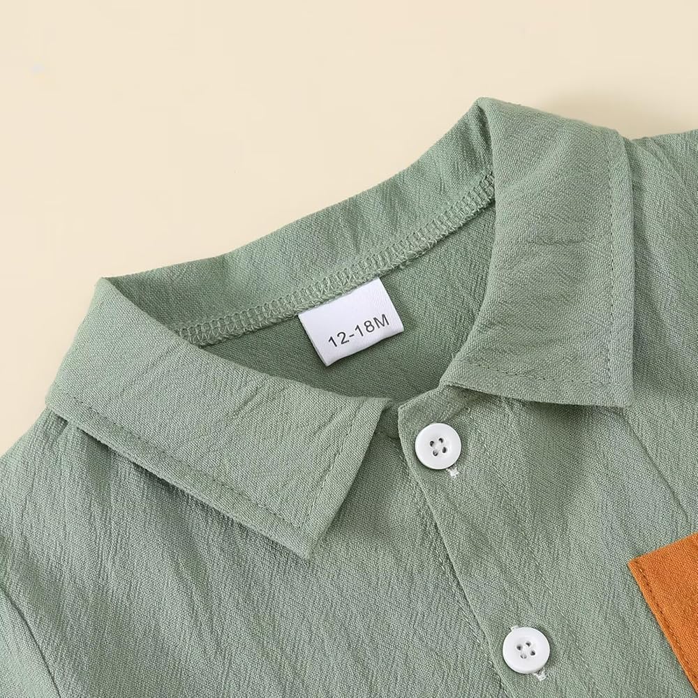 Contrast Colors: This simple and fashionable baby boy shorts set comes in a variety of colors, giving your sweet toddler baby boy a cute and stylish look this summer. Our baby boy clothes featuring with turn-down collar, short sleeve button-down shirt and match with casual shorts.