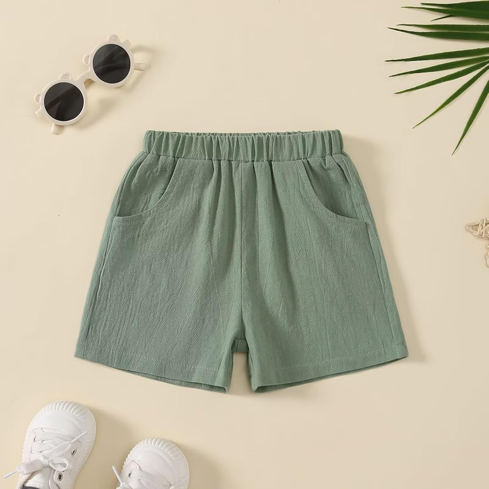 Elastic Shorts: These solid shorts are made with high quality elastic waistband to provides a comfortable fit. They also feature convenient pockets perfect for storing small items such as snacks while on the go.