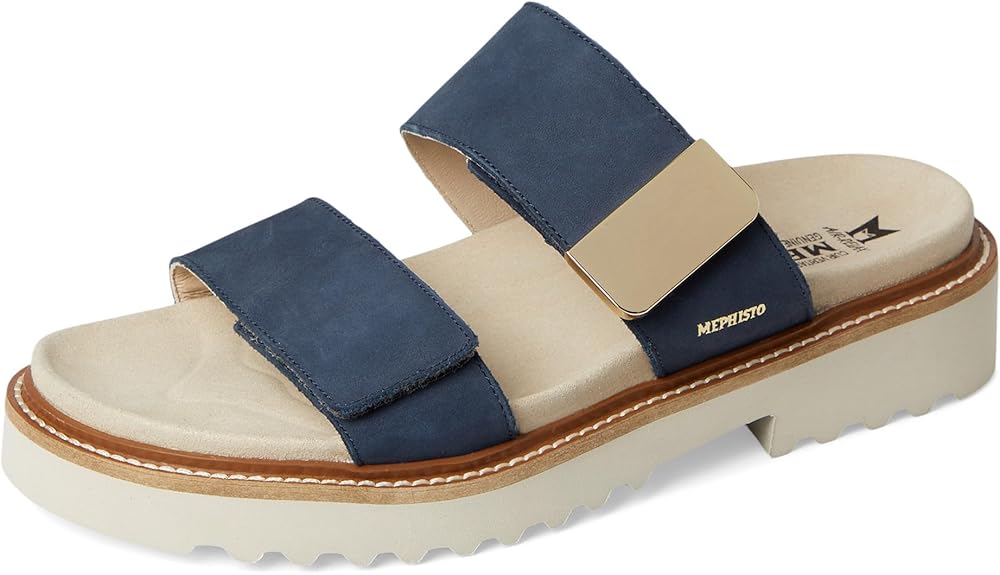 Step into unparalleled comfort with the Mephisto Women's Vonny Sandals, where style meets functionality. Expertly crafted in Portugal, these sandals are designed to adapt to any style and taste, making them a versatile addition to any wardrobe. The Soft-Air midsole, complemented by a SHOCK-ABSORBER integrated rubber outsole, ensures minimal shock impact, paving the way for a smooth, fatigue-free walk. Ideal for long strolls or casual outings, the Vonny sandals feature adjustable hook-and-loop straps, one adorned with a metallic ornament that adds a touch of fantasy. The full-grain leather upper provides durability, while the open, round toe design and block heels offer a chic yet comfortable fit. Inside, the faux leather insole and breathable leather lining ensure comfort even during extended wear. Perfect for everyday use, whether you're exploring the city, enjoying a beach day, or attending casual gatherings, these sandals cater to women who value both comfort and style. The Mephisto Vonny Sandals are not just footwear; they are an experience of comfort and elegance tailored for the modern, discerning woman.
