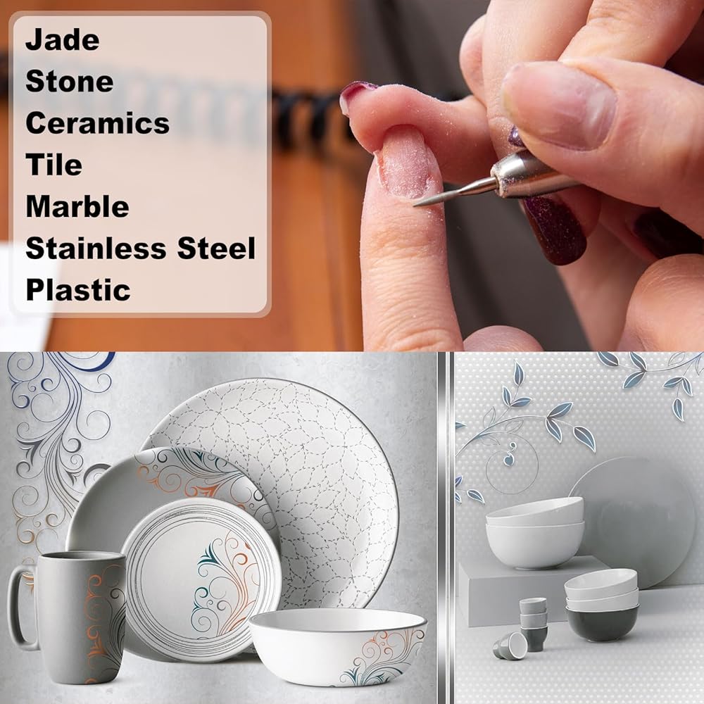 Applications - The diamond drill bit set is very suitable for home decoration and handicrafts. It is a good helper for polishing, grinding, drilling, cutting, engraving and other operations, which can be engraved on various materials, such as tiles, ceramics, marble, stone, ceramics, agate, and even hard metals such as iron and silver