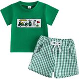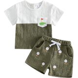 Toddler Baby Boy Summer Outfit Golf Pattern Crew Neck Short Sleeve T-Shirt with Shorts 2 Pcs Set