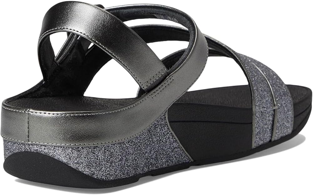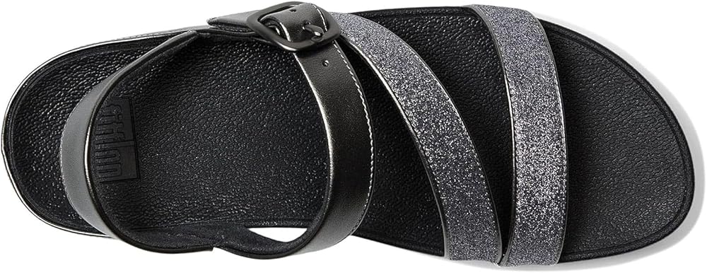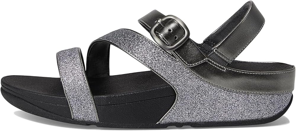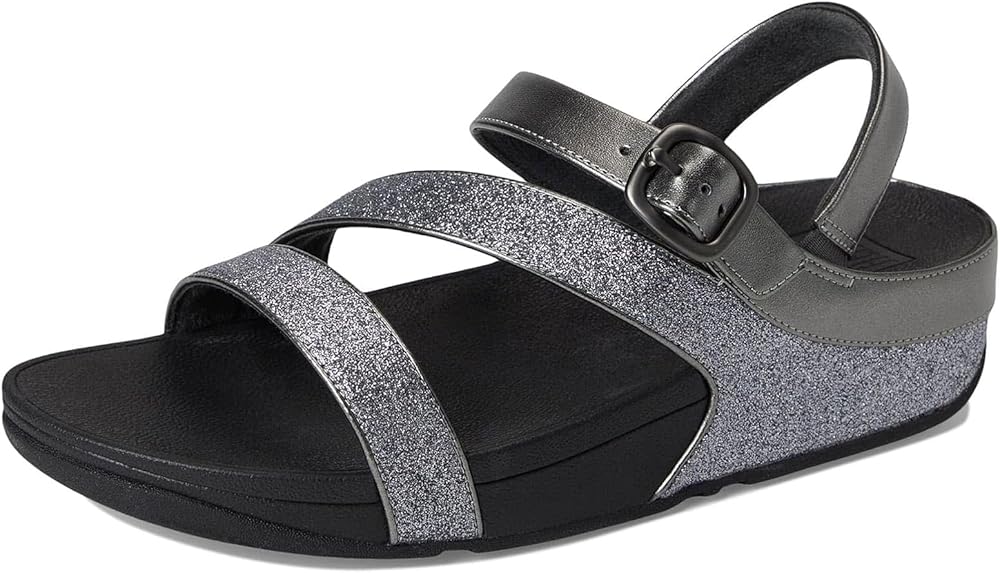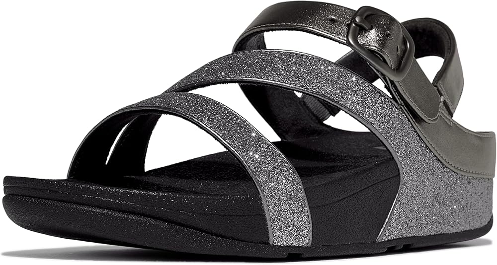 FitFlop's skinny adjustable sandals are cut to flatter, and engineered to be non-stop comfortable. Refined and elegant – this version featuring a z-strap that wraps around your feet – and embellished with a chic buckle. Here with the lower straps smothered in extra-fine glitter and upper straps (and piping detail) in soft metallic faux-leather. A discreetly elasticated back strap gives security. On FitFlop's cushiony Microwobbleboard™ midsole. Sophisticated sparkle for daytime glitz, vacations or parties/nights out.
