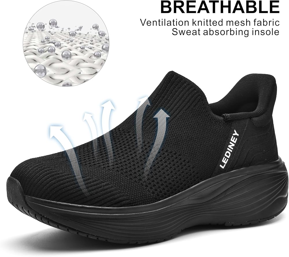 HANDS FREE CONVENIENCE & LIGHTWEIGHT DESIGN: Step effortlessly into these light slip on with an elastic collar that frees your hands from laces for busy mornings or quick gym changes. The breathable construction ensures a supportive feel, making them ideal for athletic routines or urban adventures where comfort meets practicality