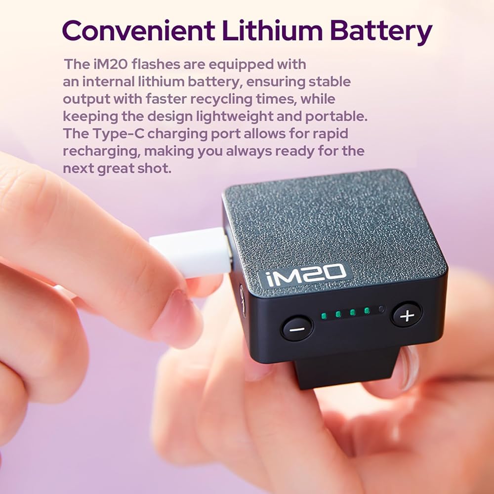 💡Type-C Charging Battery: The on-camera flash is equipped with an internal lithium battery, ensuring stable output with faster recycling times. The Type-C charging port allows for rapid recharging, making you always ready for the next great shot.