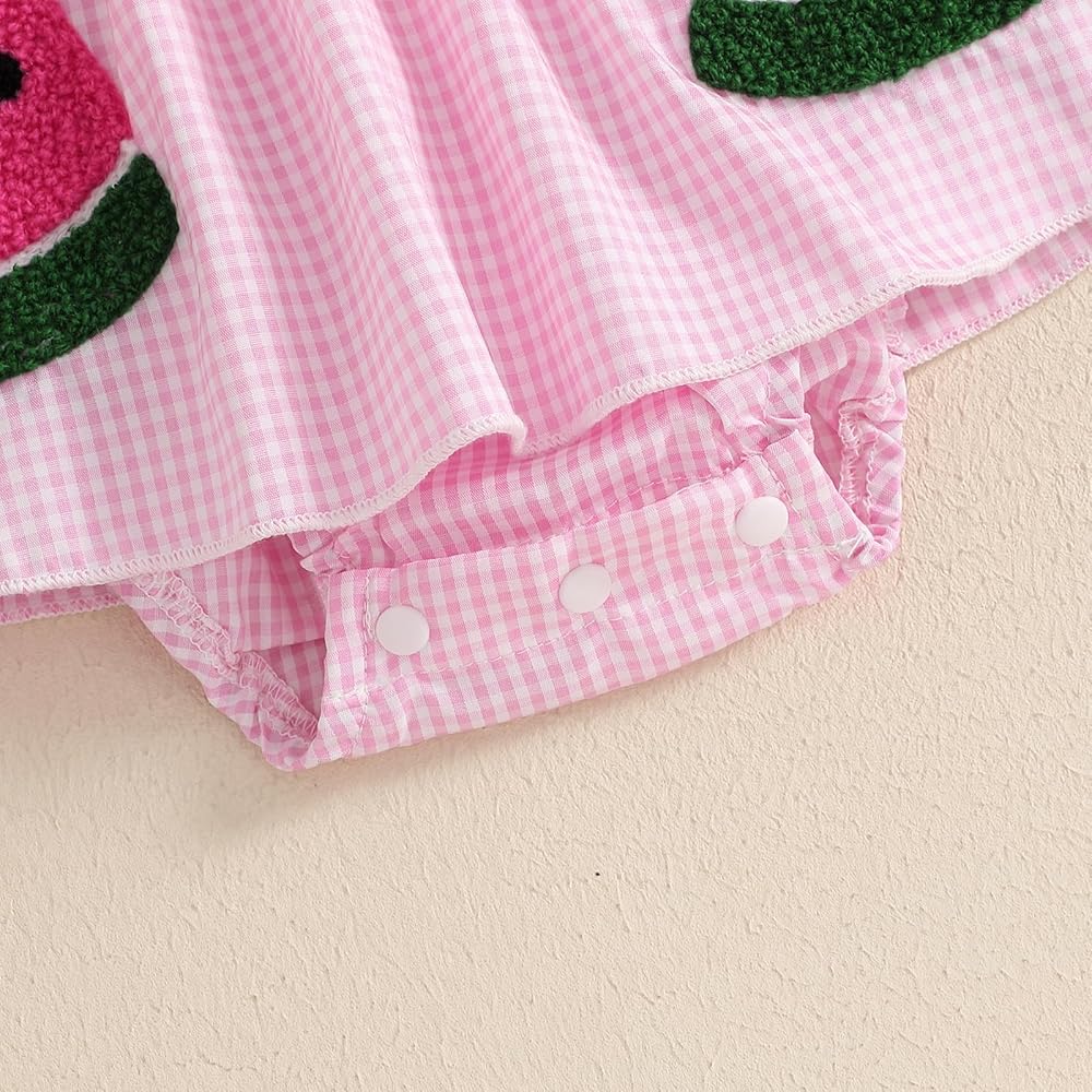 Features: Baby girl bodysuit dress,0-3month baby watermelon bodysuit dress features fly sleeve, frill trim, smocked bust, ruffled skirt hem, and bottom snap design; Paired with avocado embroidered patterns, super cute