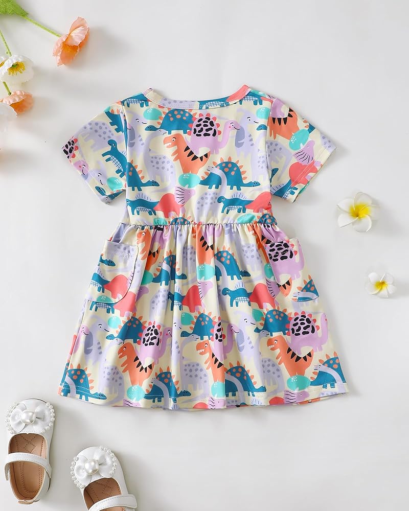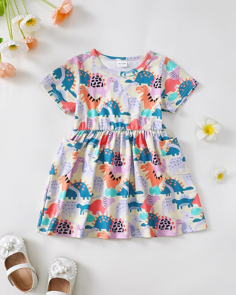 Unique Design:Ruffle crewneck and top with classic color and lovely printing(animal,floarl,dinosaur),stylish and comfortable, top choice for little toddler girl sunmmer dress.