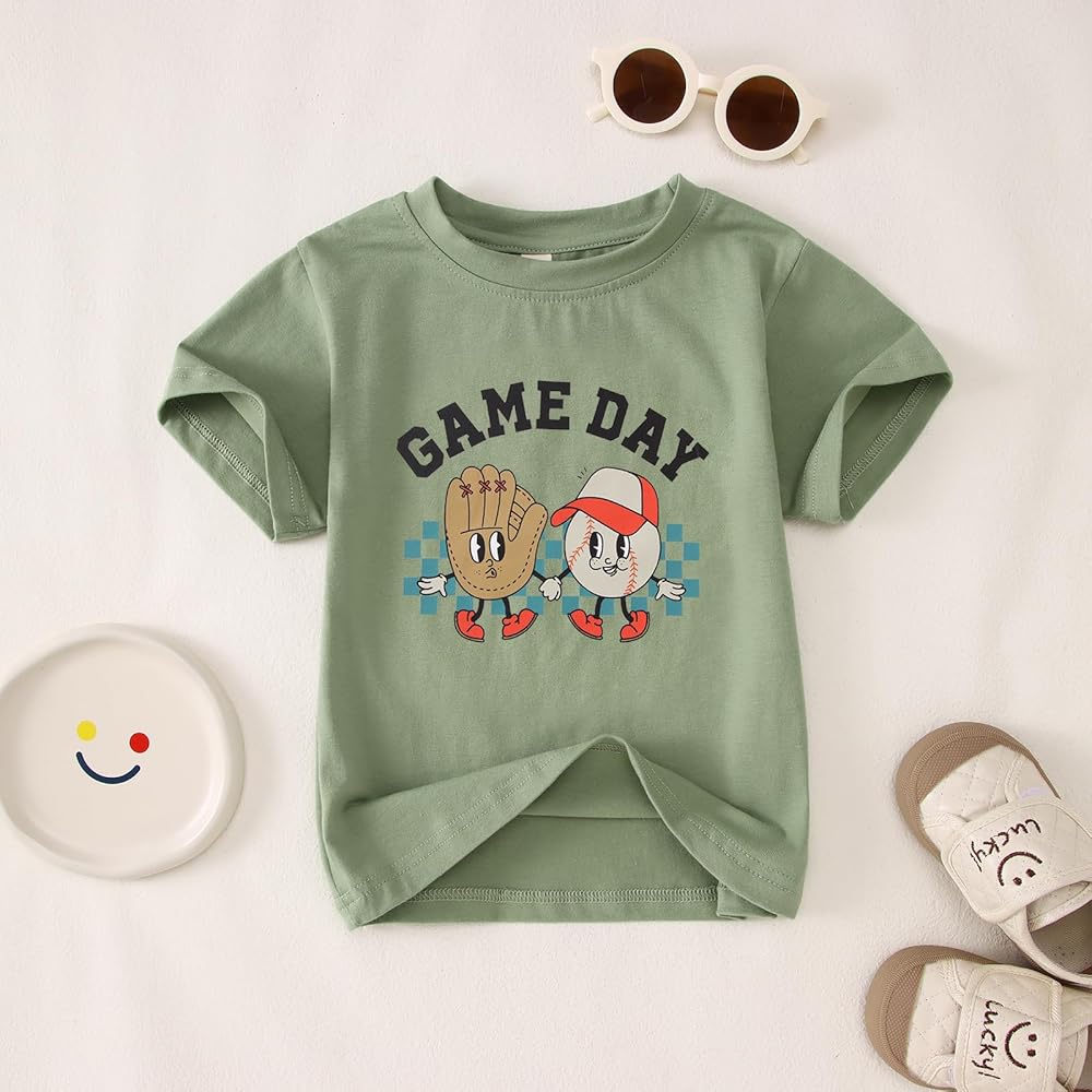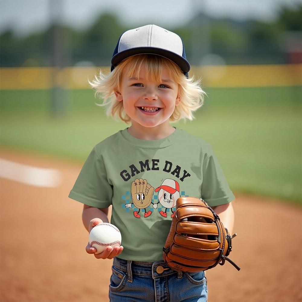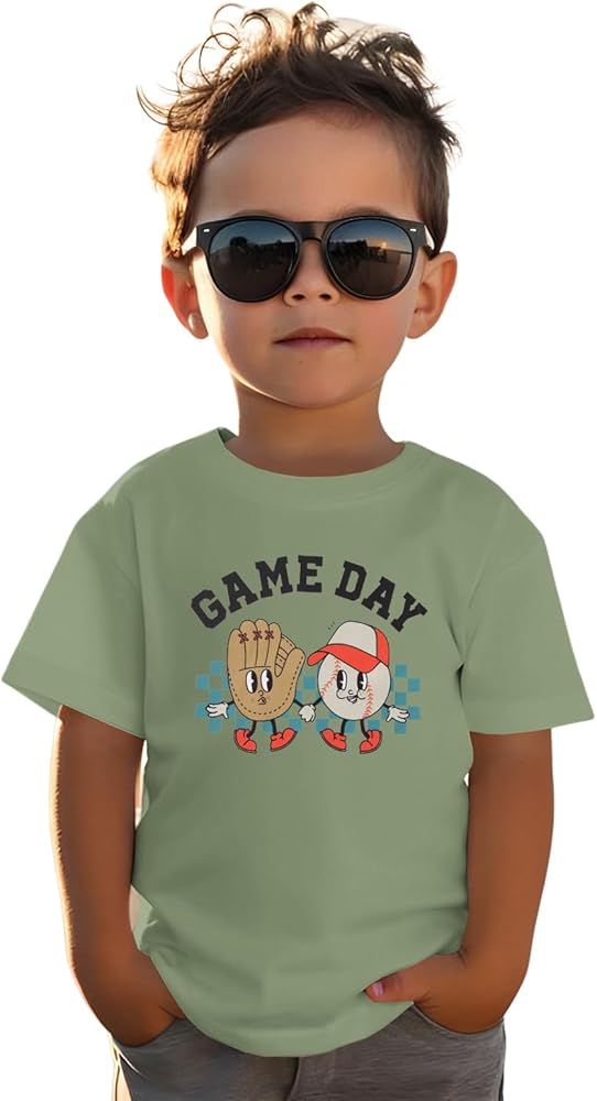 Material: Our toddler baby boys baseball game day shirt is proudly crafted from soft cotton blend fabric. This soft, breathable fabric keeps your boy comfortable all day.