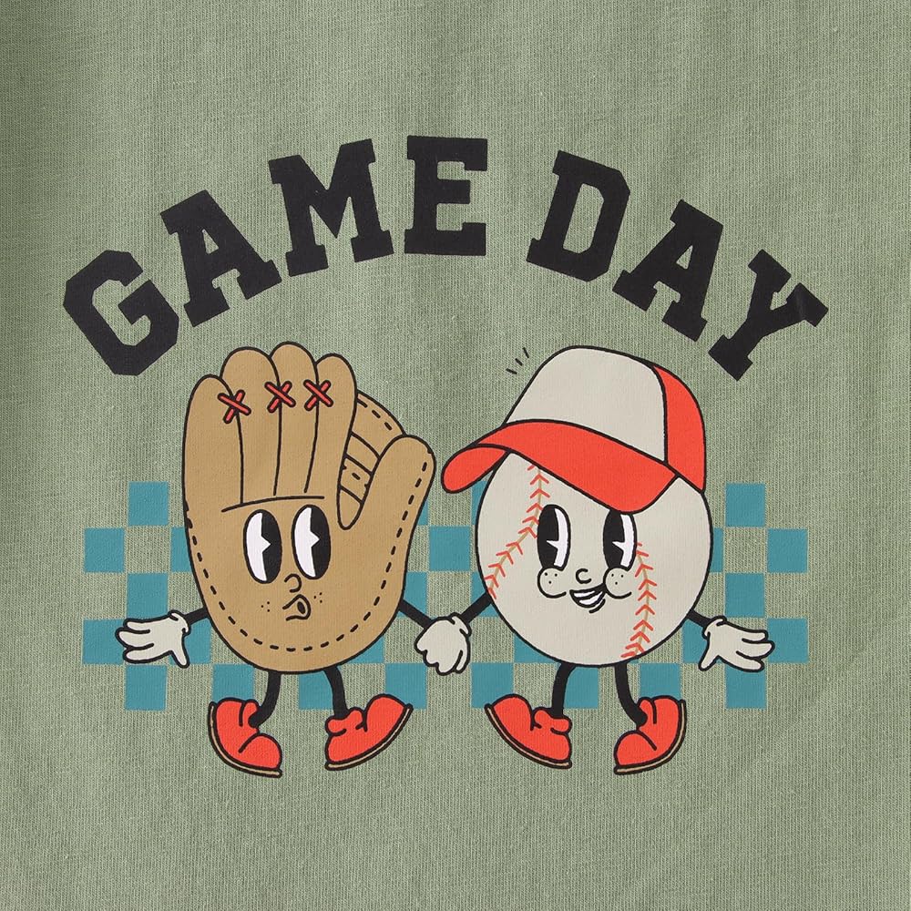 Toddler game day t-shirt features: Toddler baseball shirt the front has a unique illustration of a cute baseball and the exclusive phrase "Game Day". These sport-inspired silhouette elements can inspire movement, whether children are on or off the courts. Get your baby geared up for their favorite team's next big game with this must-have cozy baby boy baseball fan short sleeve shirt!