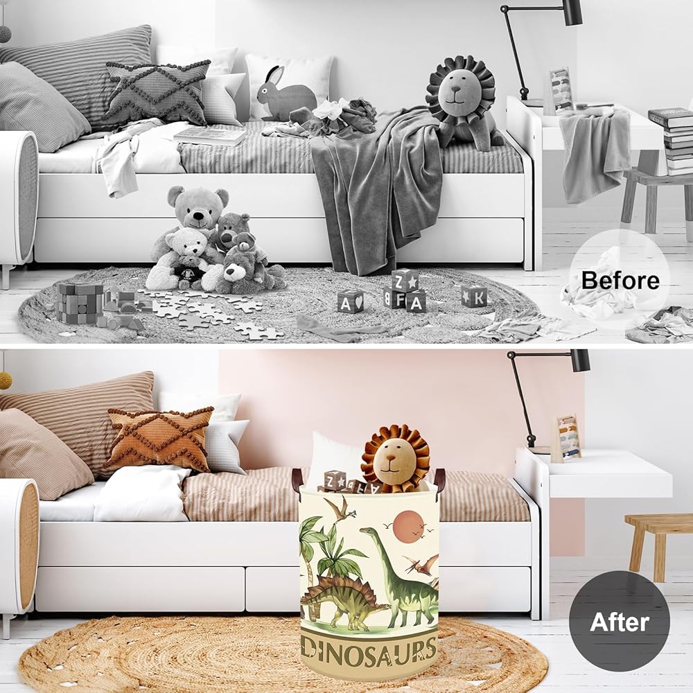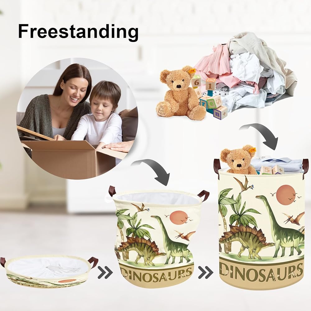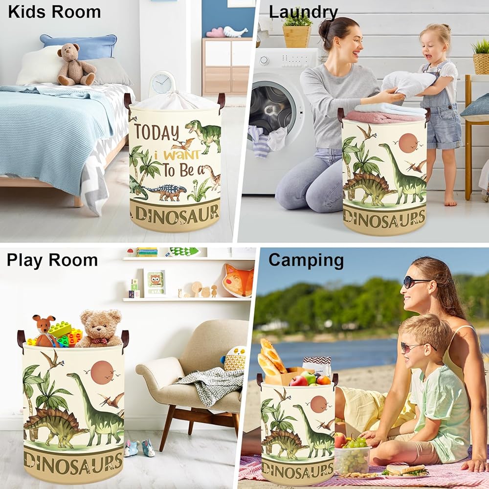 Large Kid Storage Box: Dinosaur clothes basket, storage stuffed animals in kid room, books school supplies in classroom, toys in preschool nursery daycare, dirty clothes in the bedroom