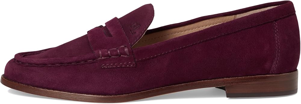 Step out in sophisticated style wearing the Lauren Ralph Lauren Wynnie Suede Loafers. Made with sleek leather suede upper and leather lining, these loafers offer a polished finish to any outfit. Featuring padded insole and round toes for added comfort, these slip-on loafers are perfect for all-day wear. Low-top design. Stacked heels. Lightly treaded rubber outsole. Imported.