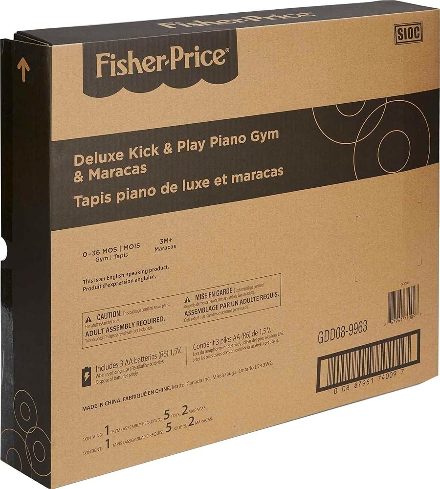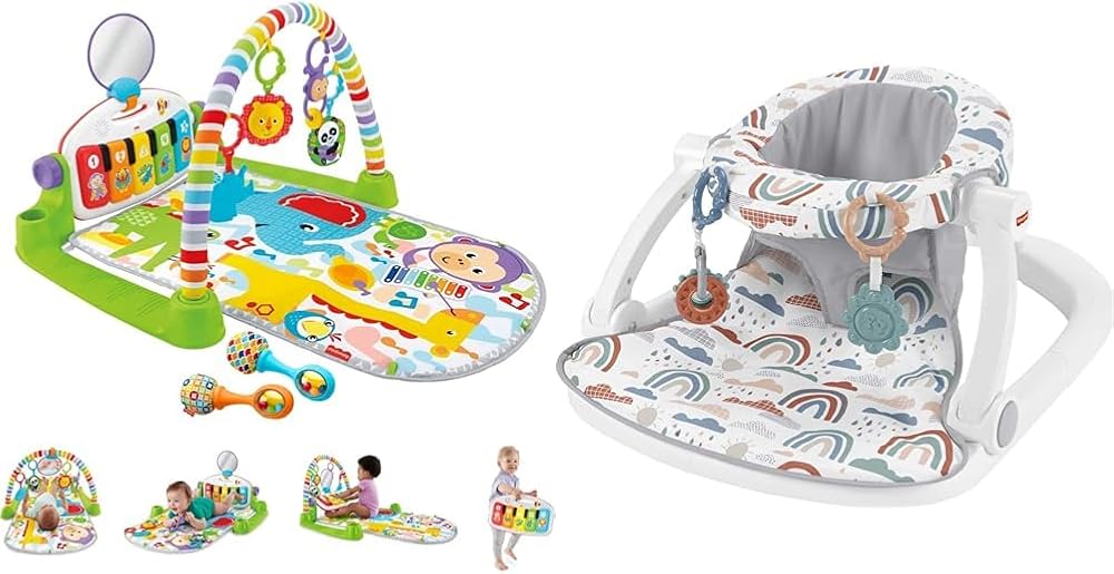 The Fisher-Price Kick & Play Piano Gym is a musical activity gym with 4 ways to play as your baby grows from newborn to toddler! Moveable toys on the overhead arch encourage little ones to bat and grasp as they lay on the playmat and kick up some tunes on the piano. The arch adjusts for tummy-time play and the piano toy removes, so little musicians can sit up and play or take the show on the road.