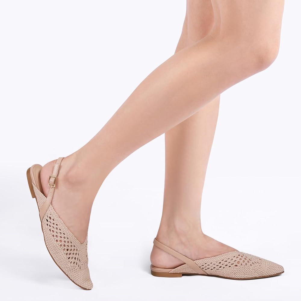 Knitted Openwork Design: These flats feature a beautiful knitted openwork design that not only adds a touch of elegance but also enhances breathability.