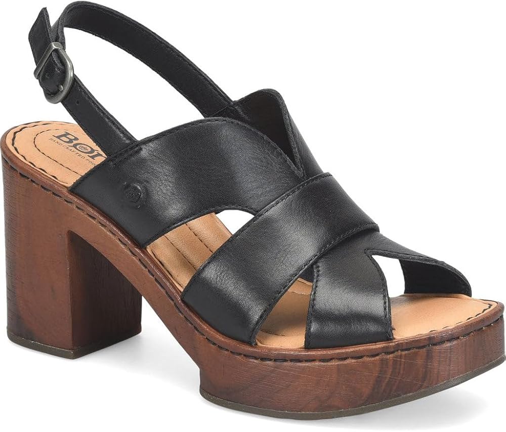 High-traction lightweight rubber outsole with textured wood-grain wrapped heel and platform