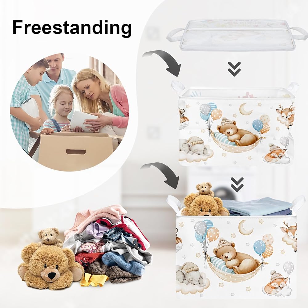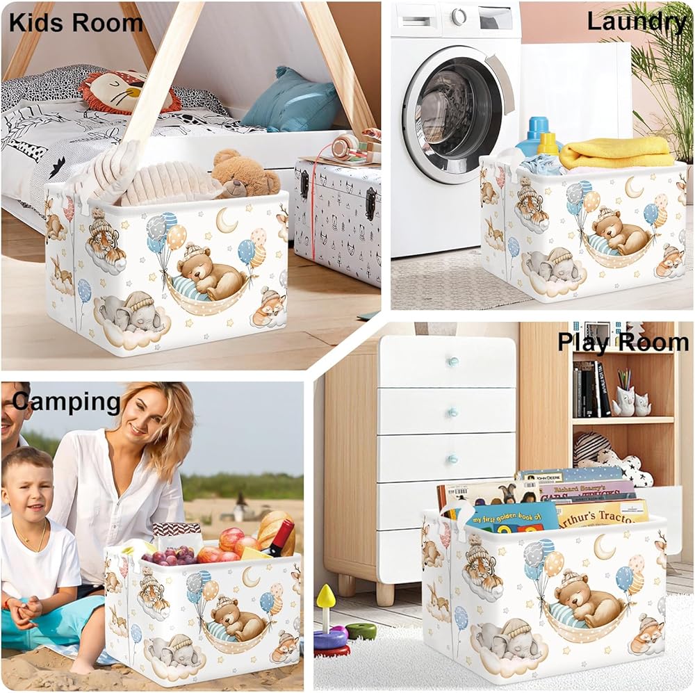 Cute Dirty Clothes Organizer: Our gift basket with popular cartoon pattern, fun trendy and adorable styles and colors, adds a splash of color to home kid's room, nursery, office, craft room, while also being functional