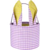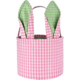 Easter Bunny Basket Plaid Gingham Easter Buckets with Border Pleat,Cute Easter Basket Tote Easter Eggs Hunt Bag,Easter Decorations,Candy Gifts Storage (Green-Ears)