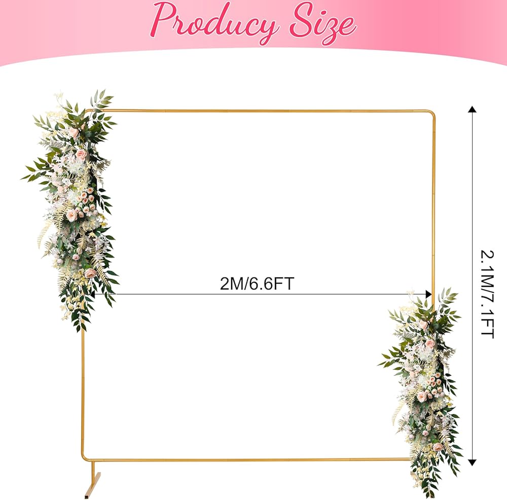 Moderate Size Design - Measuring 6.6x6.6 FT, the wedding arch backdrop stand provides plenty of space to display wonderful decorations. Whether it's a wedding or a birthday party, this square backdrop stand will add attraction to your photos and be the perfect backdrop for great memories