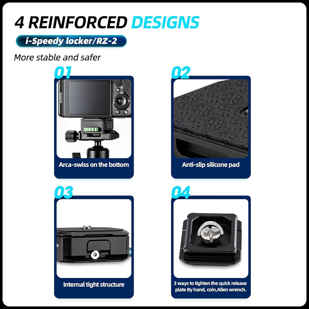 Disassembly in one second: Fotopro RZ-2 universal quick release plate is easy to install. It is directly stuck on the gimbal slot and automatically locked. It can be taken out at the touch of a button, simple and quick.