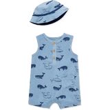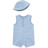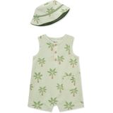 Head to Palm Beach in this boys' palm tree terry romper and matching hat! Little Me creates unique clothing that celebrates those fleeting years when newborns transform into young toddlers. Our products let little ones be little, whether they are napping, throwing cereal on the floor, or crawling through deliciously muddy grass.