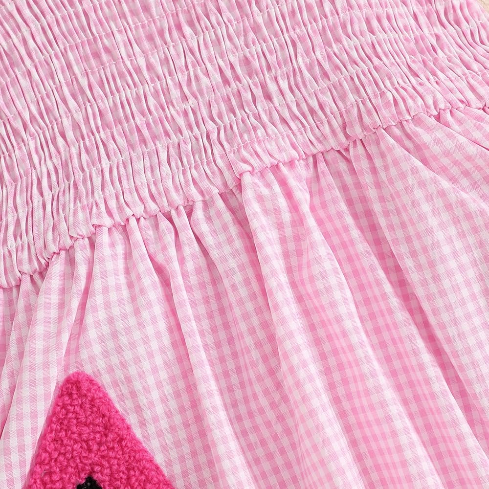 - Feature: baby girl ruffle romper sleeveless, baby girl summer sleeveless tulle dress, infant tutu dress, newborn romper;sleeveless, round neck, fruit embroidery, smocked detail, ruffle skirt hem, loose fit;snap closure at the bottom, easy to change diapers