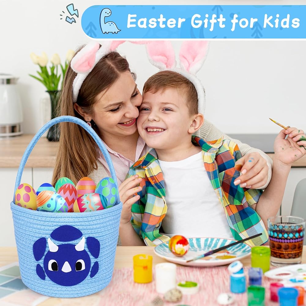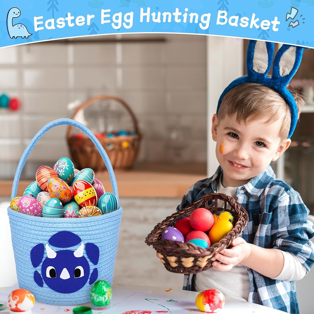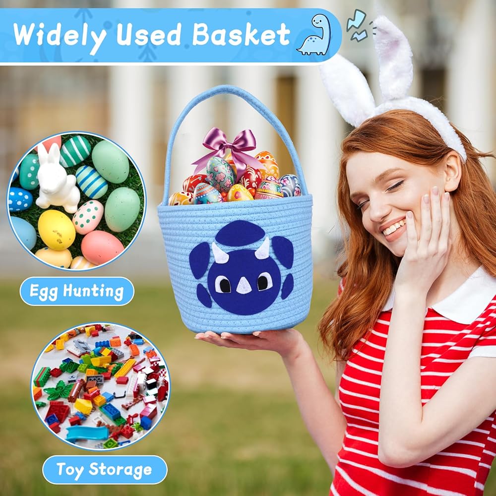 Easter Baskets:Get ready for Easter egg hunts with the woven dinosaur basket featuring a festive Easter.Adorable dinosaur designs to drighten up your Easter basket