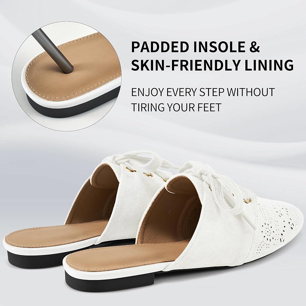 Classic Style: Slide into comfort effortlessly with these classic lace-up mules for women, featuring a round-toe and backless design. These designs offer a spacious fit that is the perfect blend of ease and functionality
