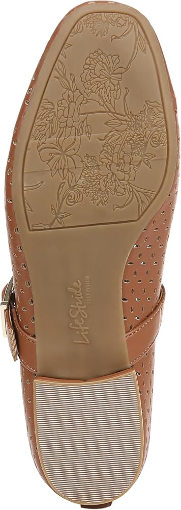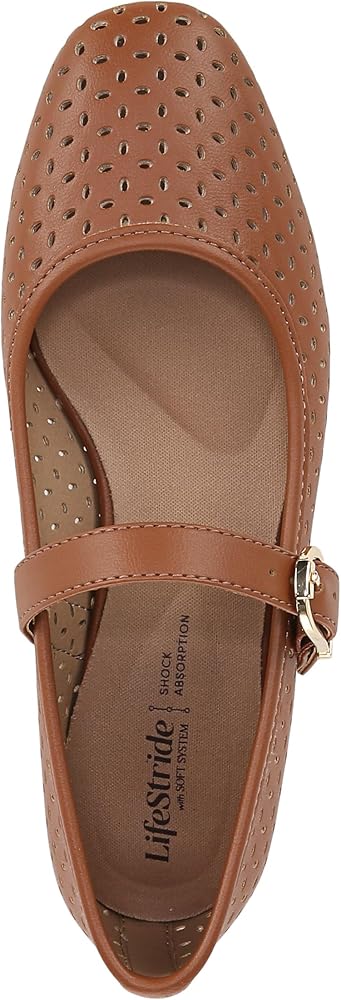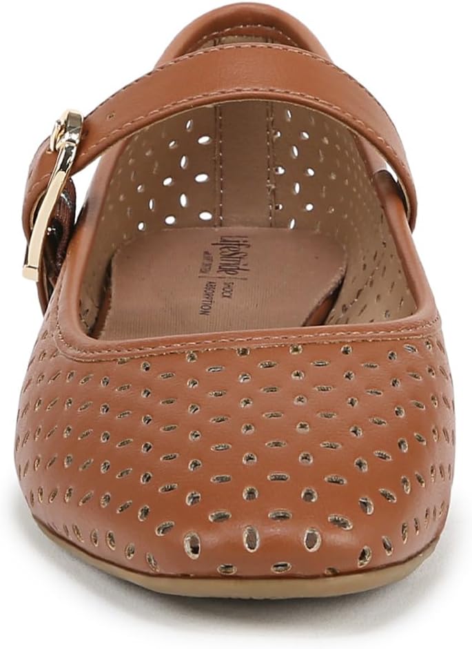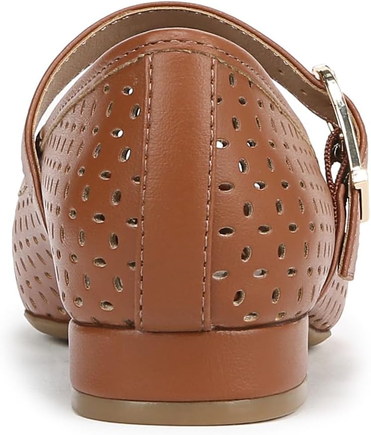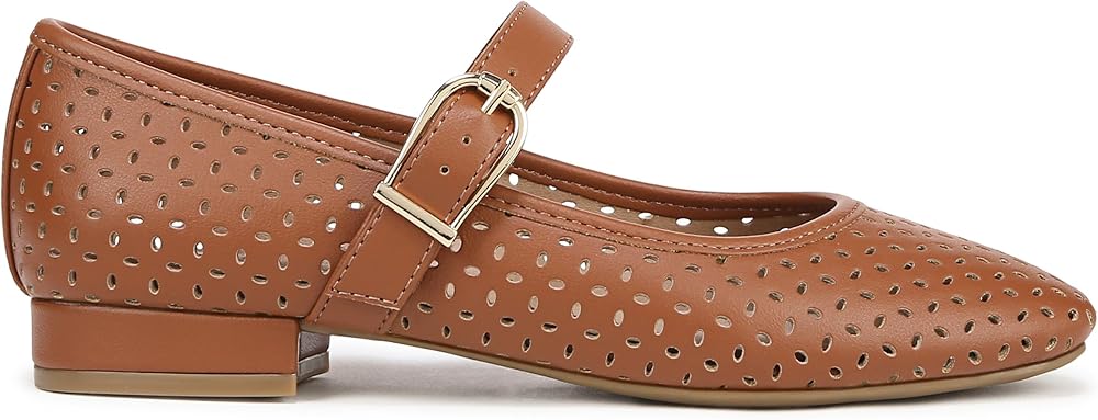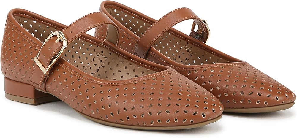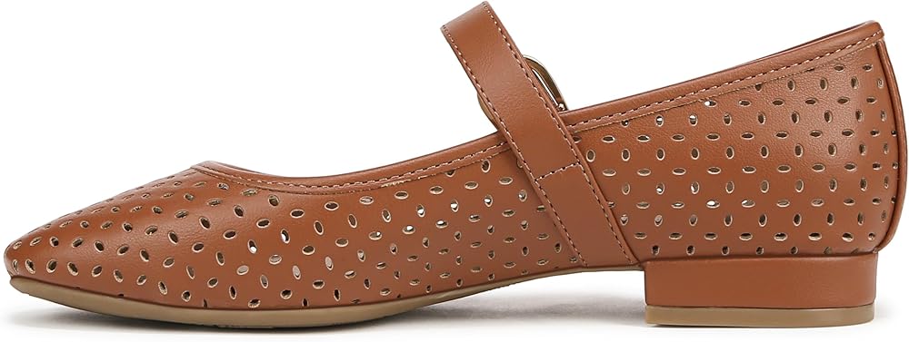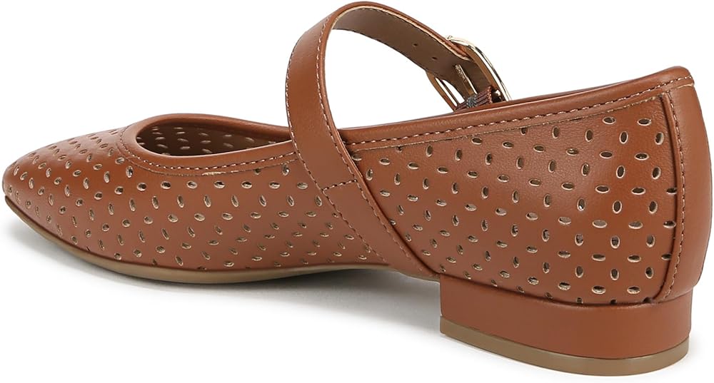 The classic, essential Mary Jane flat, now with stylish cutouts. These sleek women's Mary Janes go with anything and everything. Faux leather upper with a subtle square toe, slip-on fit, cutout detailing, Mary Jane strap with adjustable buckle, and lightweight design. Linings crafted from partially recycled materials. Trusted Soft System® comfort technology for unmatched cushion, support, and flexibility in every pair. Shock absorption with pressure distribution and superior cushioning for an effortless feel. Traction sole for extra stability. Just Right Height 3/4 inch block heel.