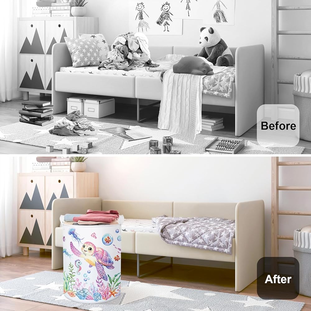 Cute Clothes Organizer Basket: The foldable laundry bin folds up easily for compact storage, ideal for home bedroom living room bathrooom, campus, camping, apartments, hotels and school dorm