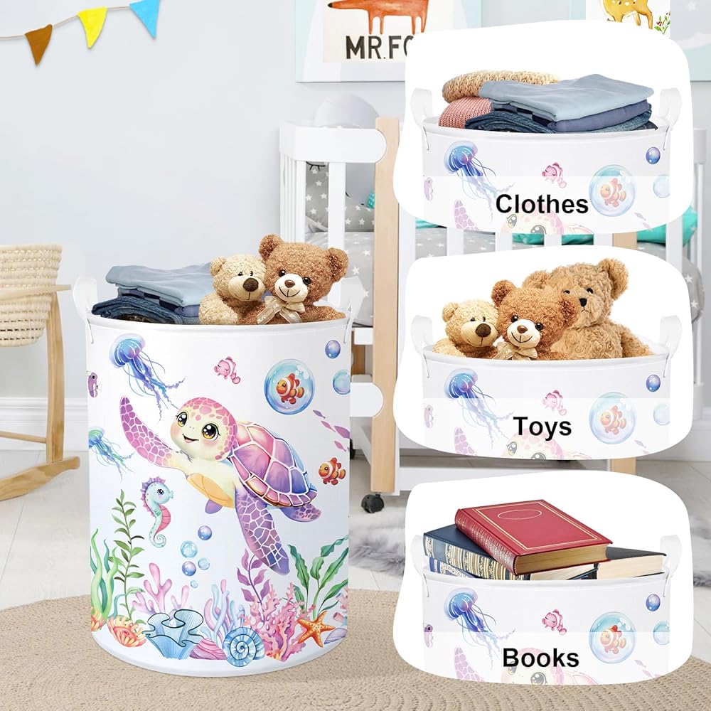Cute Dirty Clothes Organizer: Our gift basket with popular cartoon pattern, fun trendy and adorable styles and colors, adds a splash of color to home kid's room, nursery, office, craft room, while also being functional