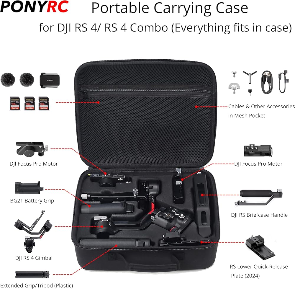 【Custom Design】The PONYRC RS 4 Mini carrying case is tailor-made for the DJI RS 4 Mini or RS 4 Mini Creator Combo Gimbal Stabilizer, along with all its included accessories.