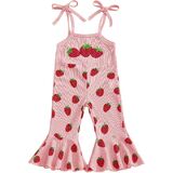Emmababy Baby Girl Strawberry Jumpsuit Toddler Bell Bottom Romper Tie Shoulder Flare Jumpsuit Kids Strawberry Birthday Outfit