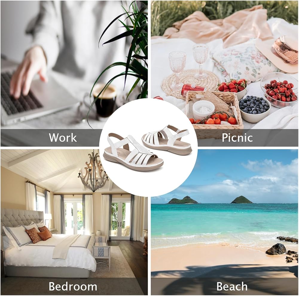 DESIGN: Elevate your summer look with SelenePair's open toe flat sandals, featuring a glimmering rhinestone upper that exudes sophistication and effortless style, while providing ample arch support for all-day comfort.