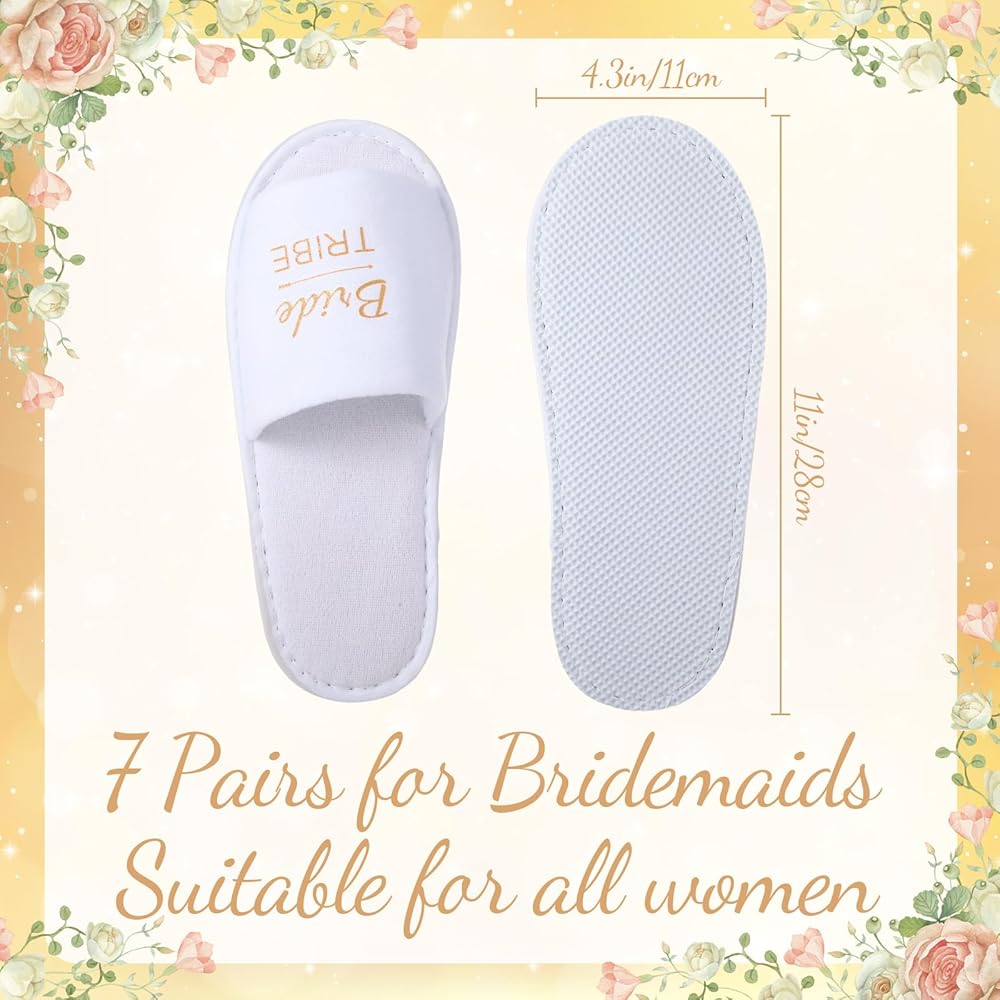 IDEAL DELICATE ACCESSORY FOR WEDDINGS: The bridesmaid slipper set package contains 7 pairs of wedding day bridesmaid slippers, which is more than enough quantity for your bridesmaids to wear on your wedding day, this thoughtful set ensures that your bridesmaids will be comfortable and practical throughout the wedding preparations and celebrations