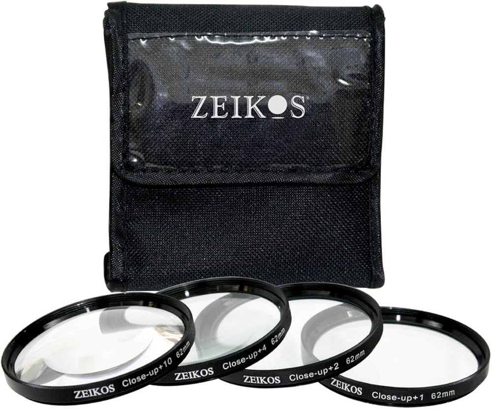 Zeikos 52mm Glass Multi Coated 4 piece Close-up Filter Set consisting of +1, +2, +4 & +10 diopters. This is the perfect, economical alternative to a macro lens. Close-up filters offer a world of new and creative possibilities. They work well with both traditional & digital cameras. The set comes with a handy carrying case.