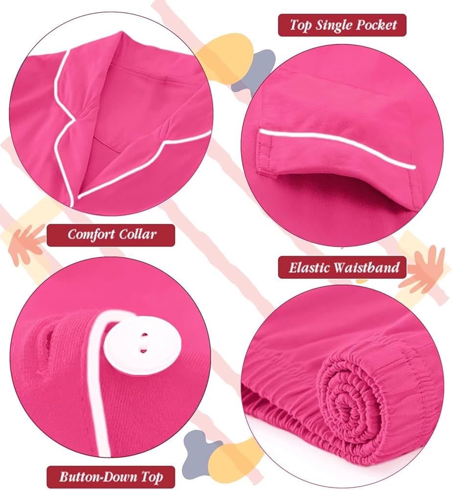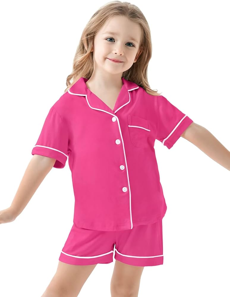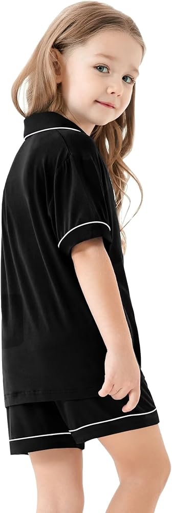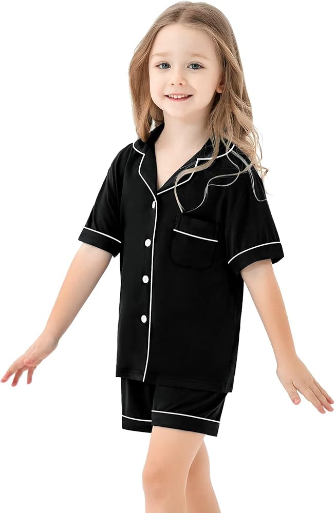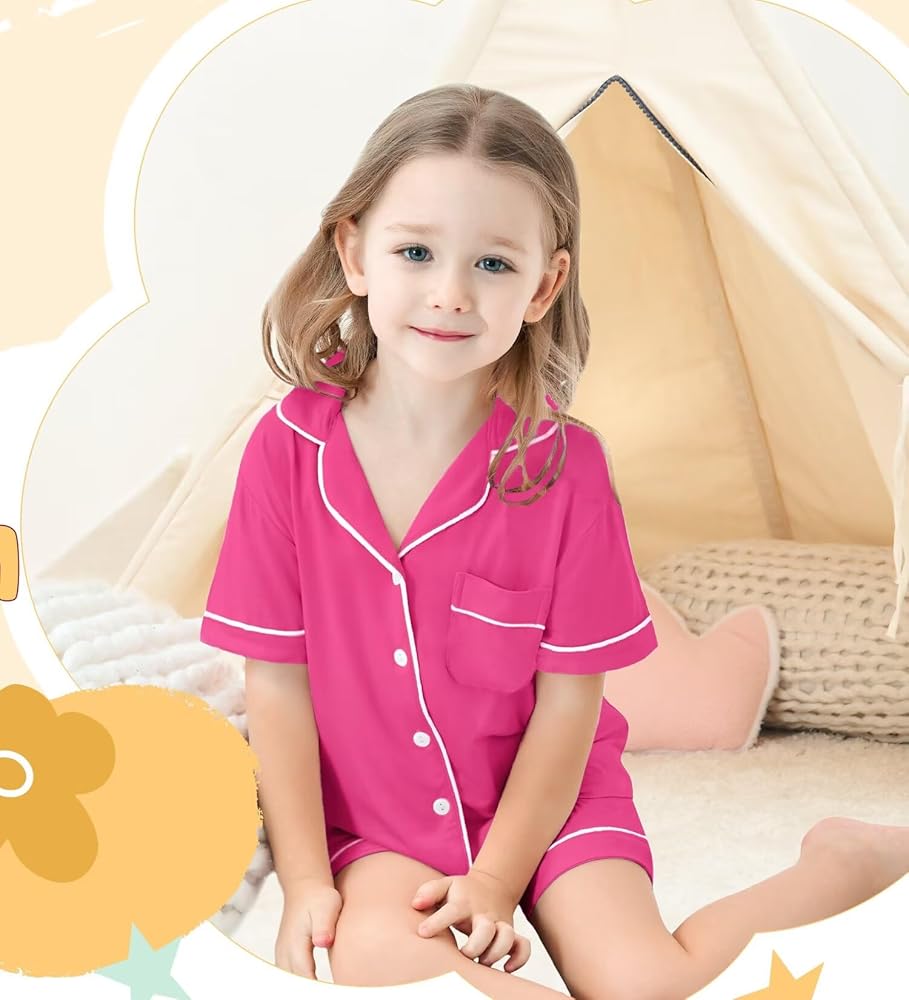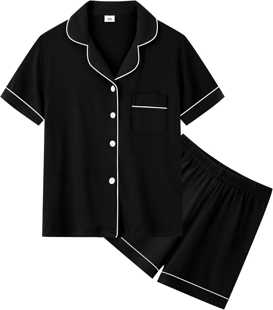 UNISEX DESIGNS - Two-pieces button down sleepwear set with short sleeved top and elastic waist shorts, making your kids feel relax. Classic notch collar, chest pocket lend sophisticated detail. Superior stitching, perfectly-lined hems, not easy to be deformed or got faded.